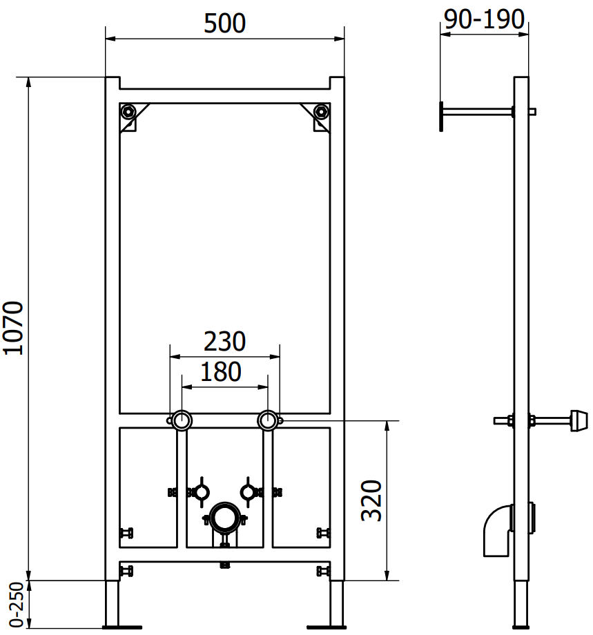 Možnost nastavitve višine okvirja v razponu od 0 do 25 cm omogoča boljše prilagajanje različnim tehničnim pogojem v kopalnici. Prilagodljiv obseg nastavitve zagotavlja udobje pri montaži in doseganje optimalne višine okvirja.