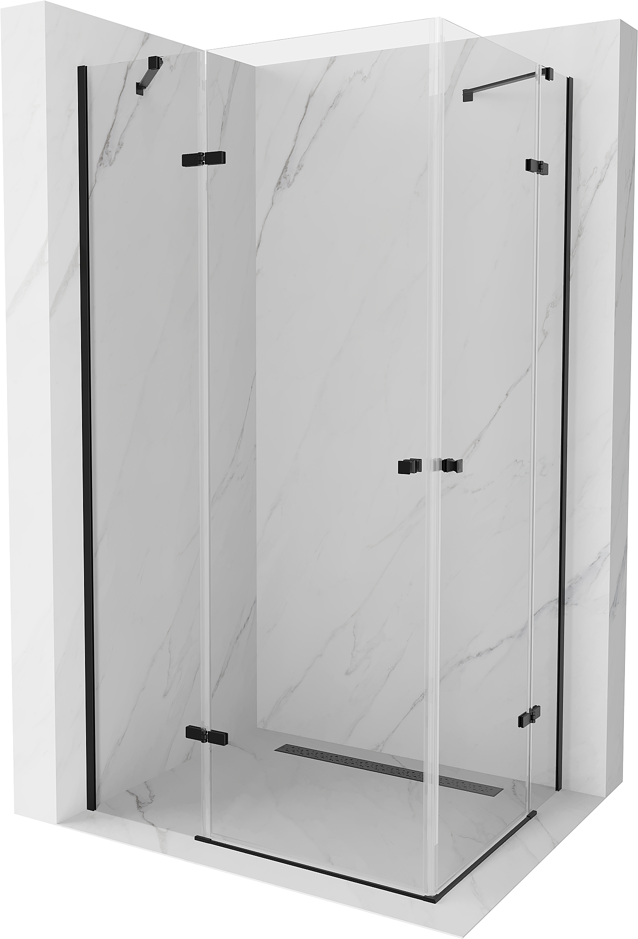 Mexen Roma Duo nagibna tuš kabina 100 x 90 cm, prozorna, črna - 854-100-090-70-00-02