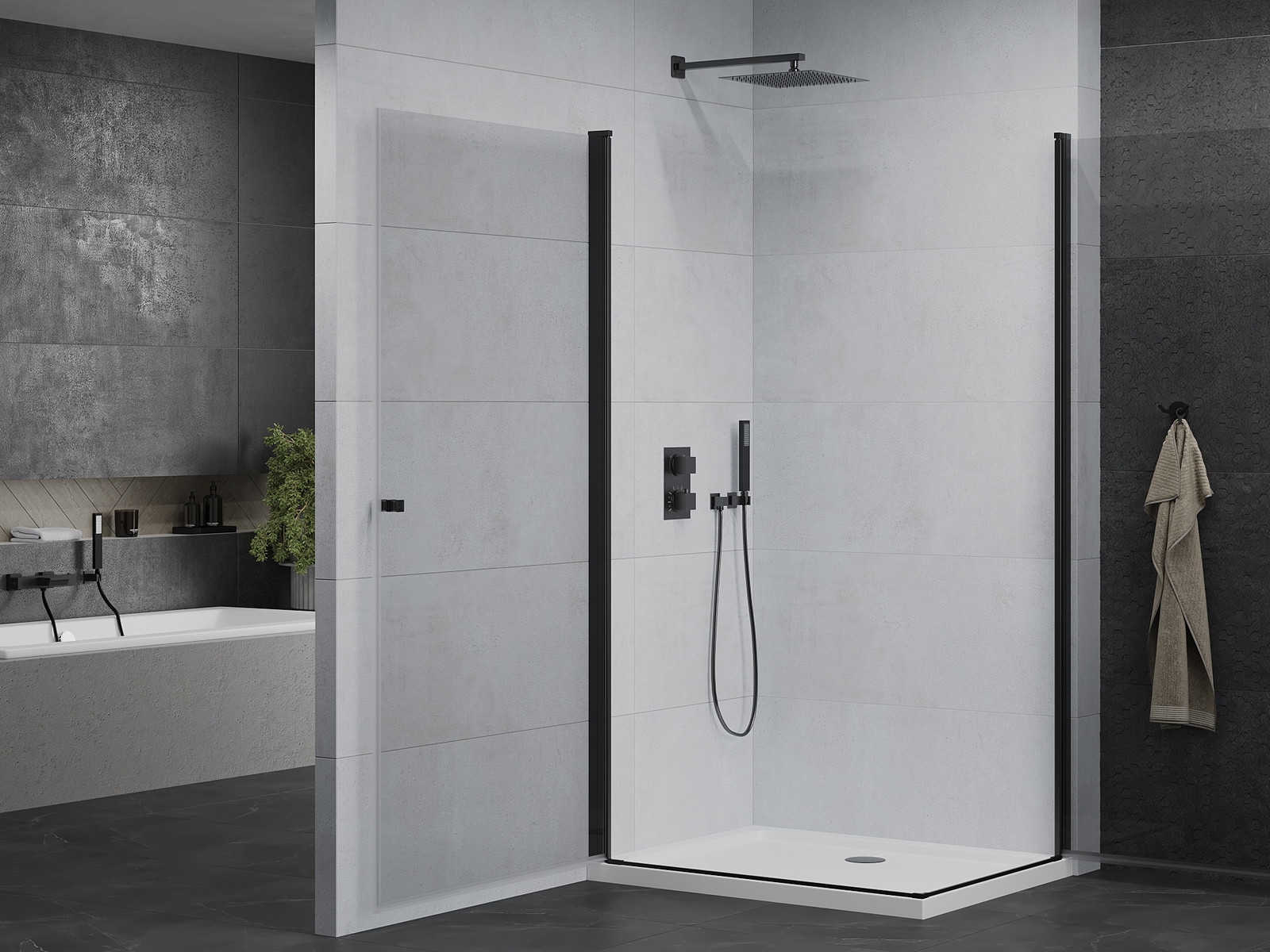 Mexen Pretoria Duo tuš kabina s krilnimi vrati 80 x 70 cm, prozorna, črna + pladenj Flat - 852-080-070-70-02-4010B