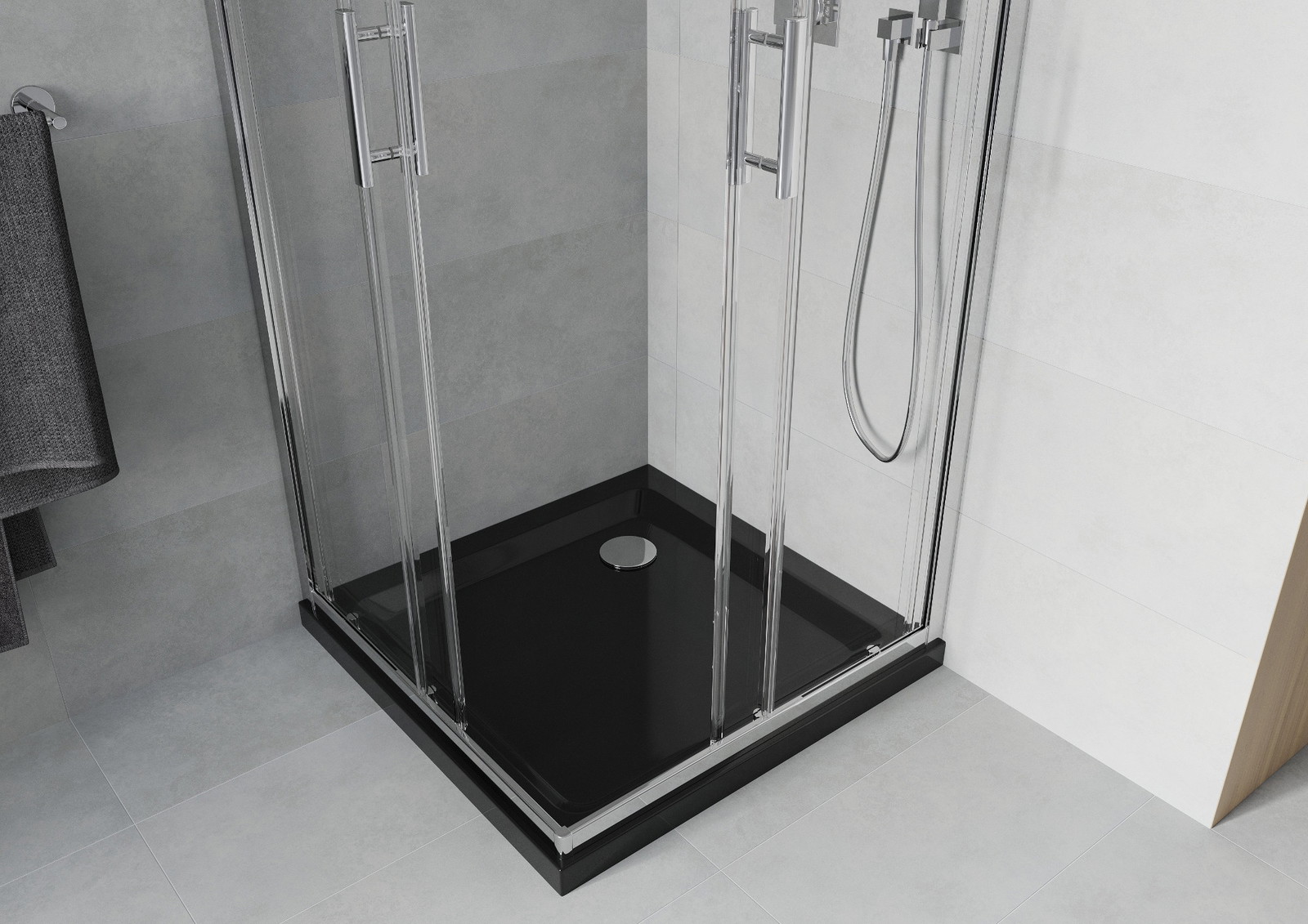 Mexen Rio kvadratna tuš kabina 80 x 80 cm, prozorna, krom + kopalna Flat, črna - 860-080-080-01-00-4070