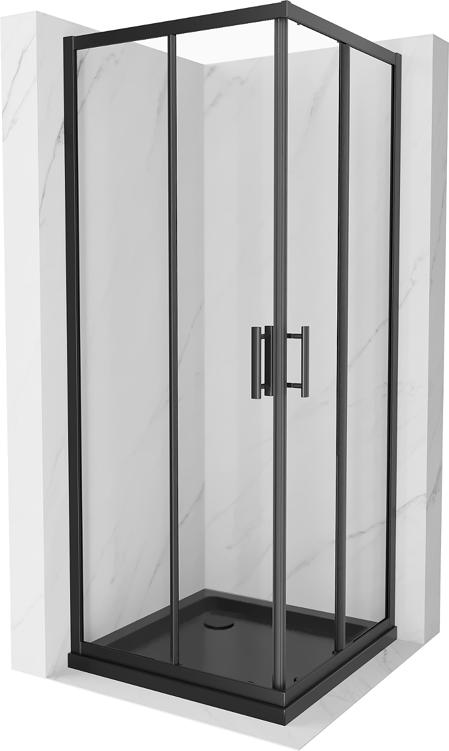 Mexen Rio kvadratna tuš kabina 80 x 80 cm, prozorna, črna + tuš kad Flat, črna - 860-080-080-70-00-4070B