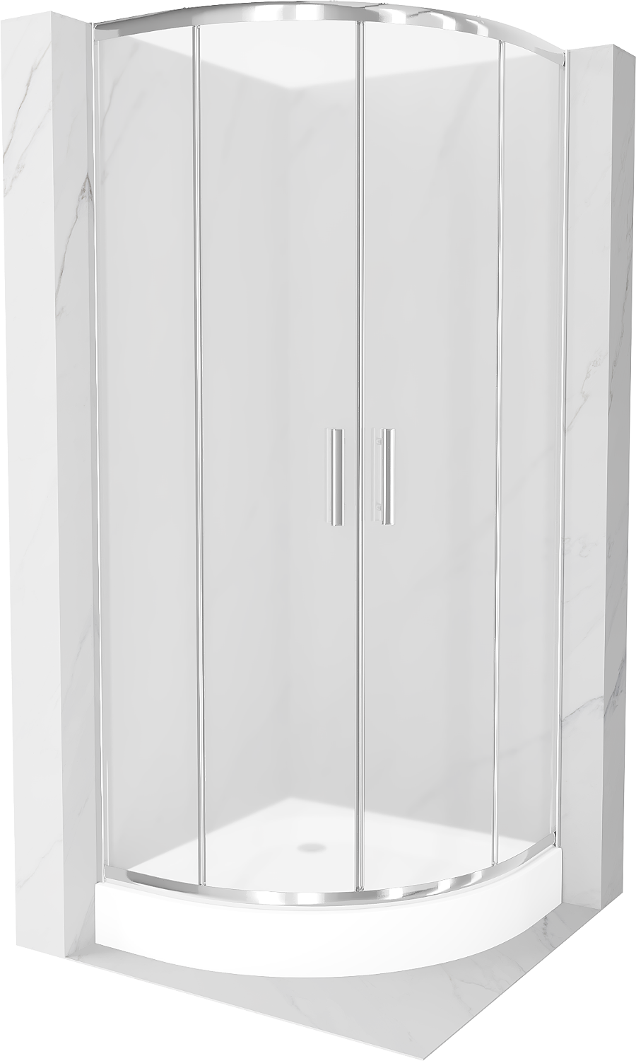Mexen Rio polkrožna tuš kabina 90 x 90 cm, zmrzlina, krom + pladenj, bela - 863-090-090-01-30-4710