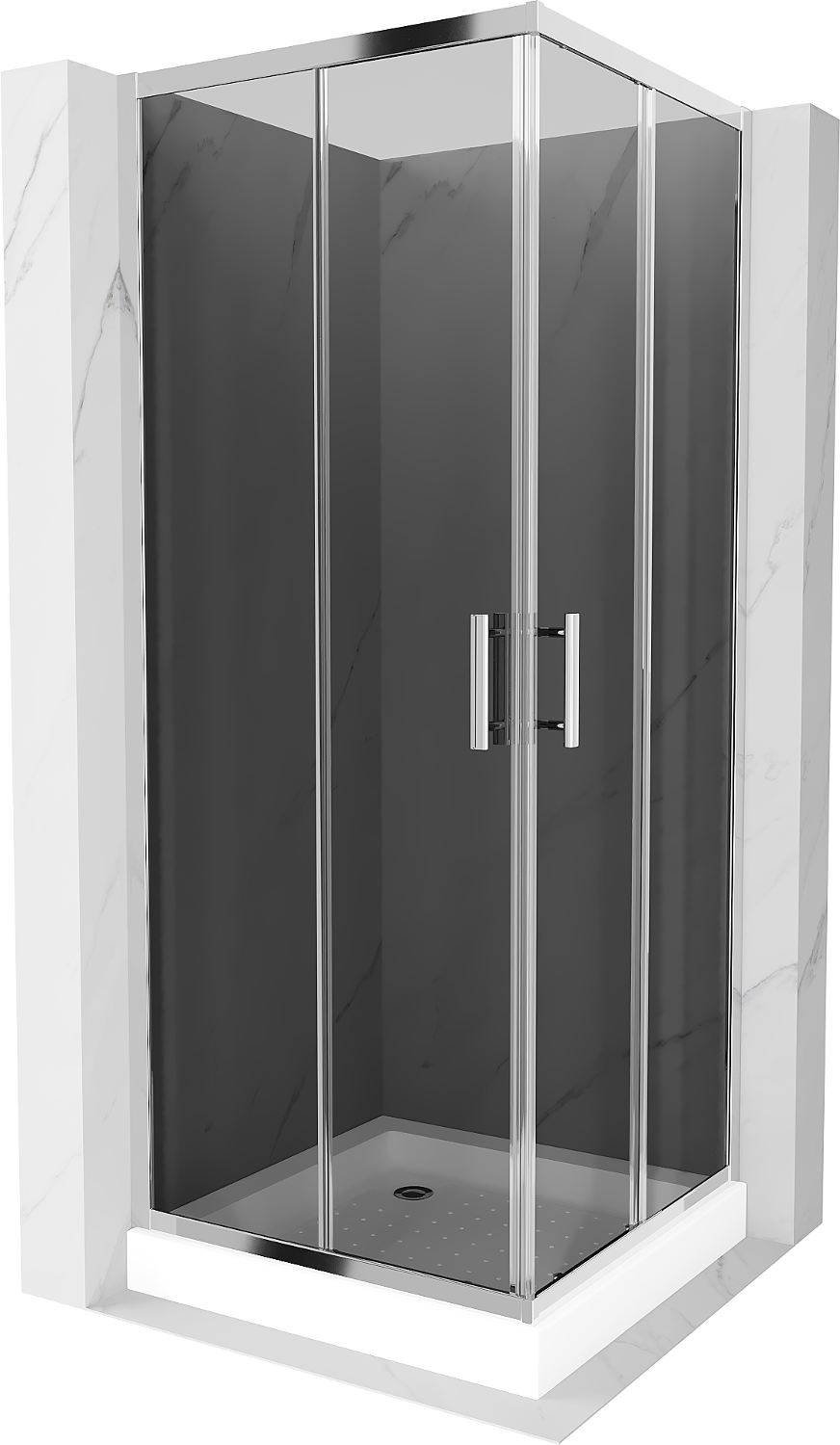 Mexen Rio kvadratna tuš kabina 80 x 80 cm, grafit, krom + kad, bela - 860-080-080-01-40-4510