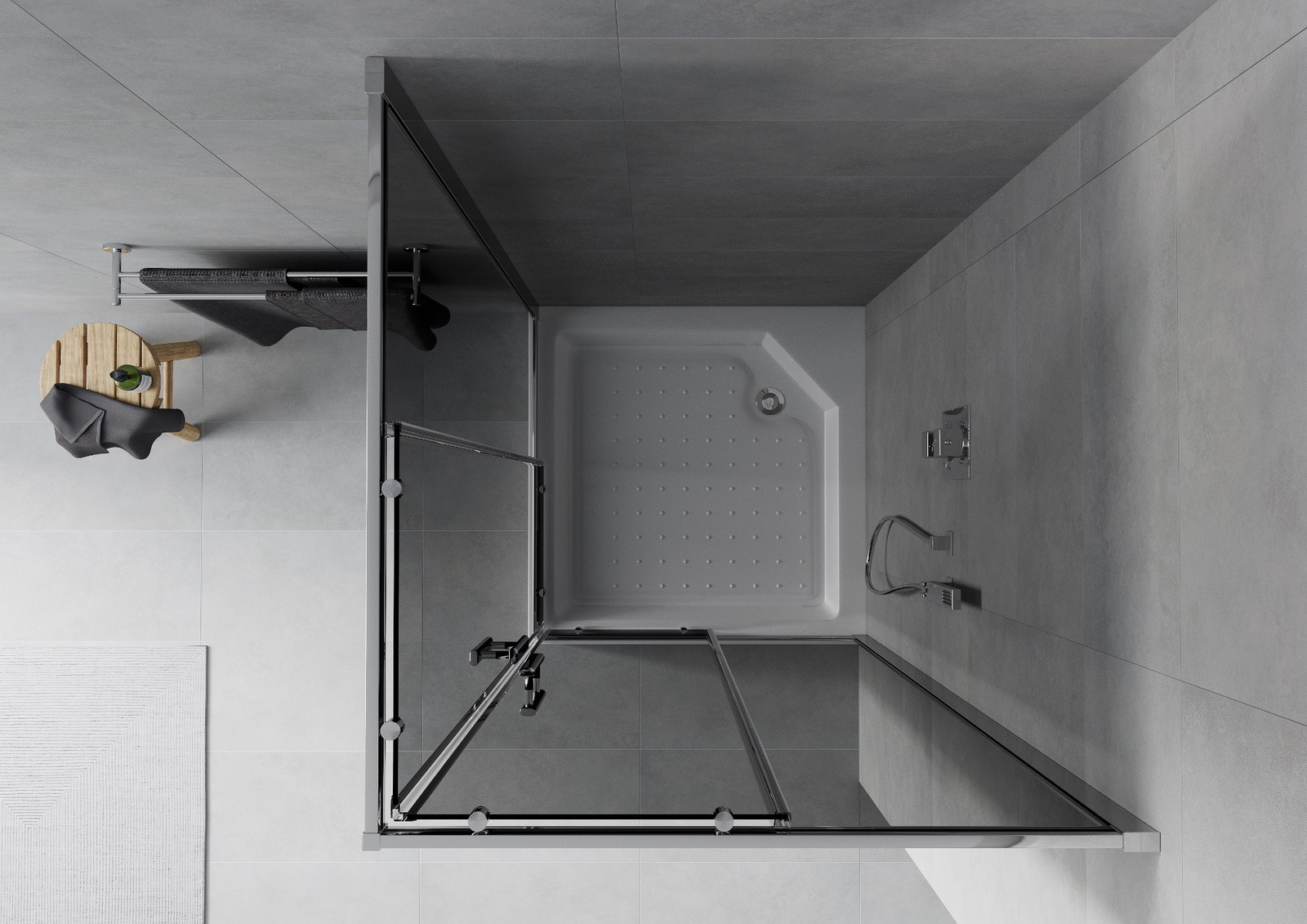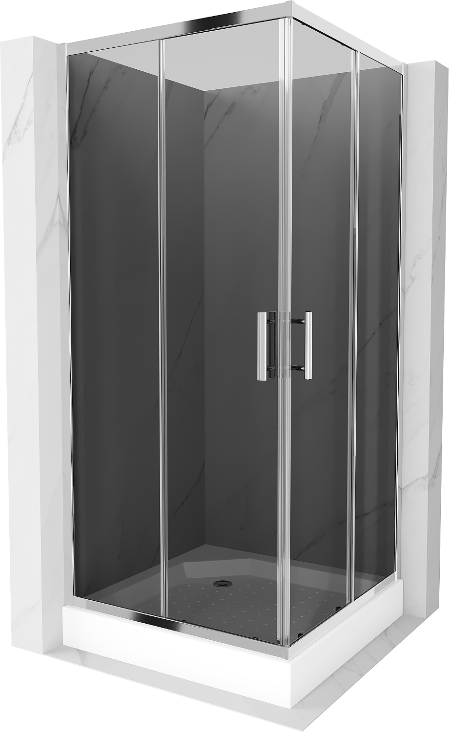 Mexen Rio kvadratna tuš kabina 90 x 90 cm, grafit, krom + tuš kad, bela - 860-090-090-01-40-4510