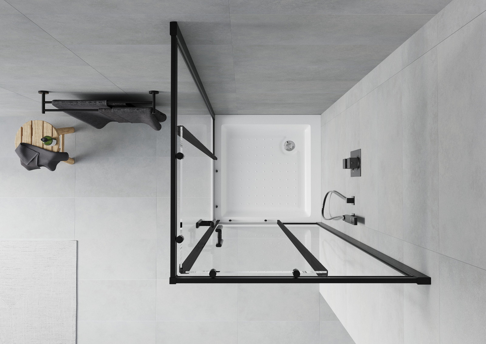 Mexen Rio Kvadrarna tuš kabina 70 x 70 cm, prosojna, črna + kad, bela - 860-070-070-70-00-4510