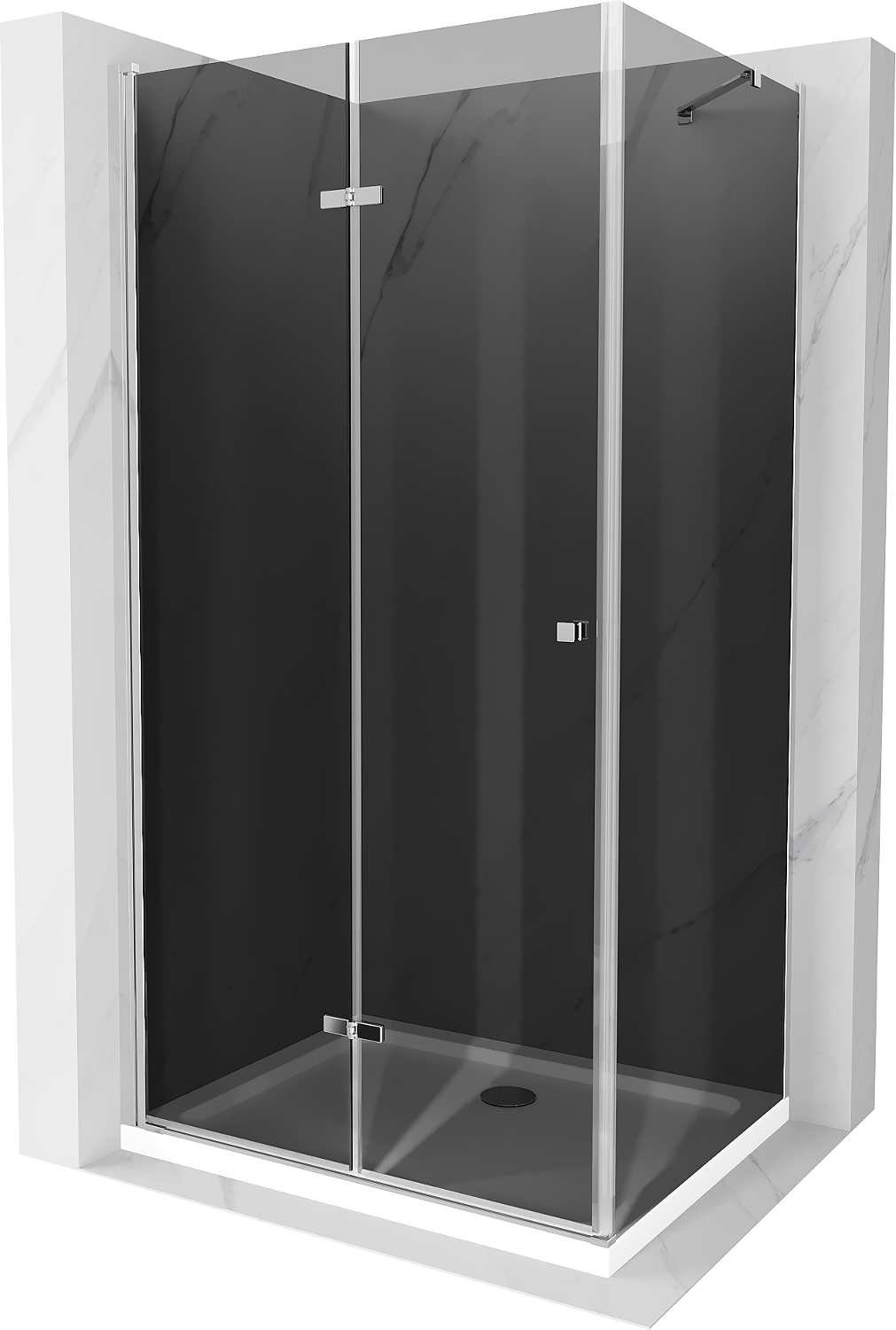Mexen Lima zložljiva pršna kabina 90 x 120 cm, grafitna, kromirana + Plitki tuš, bela - 856-090-120-01-40-4010