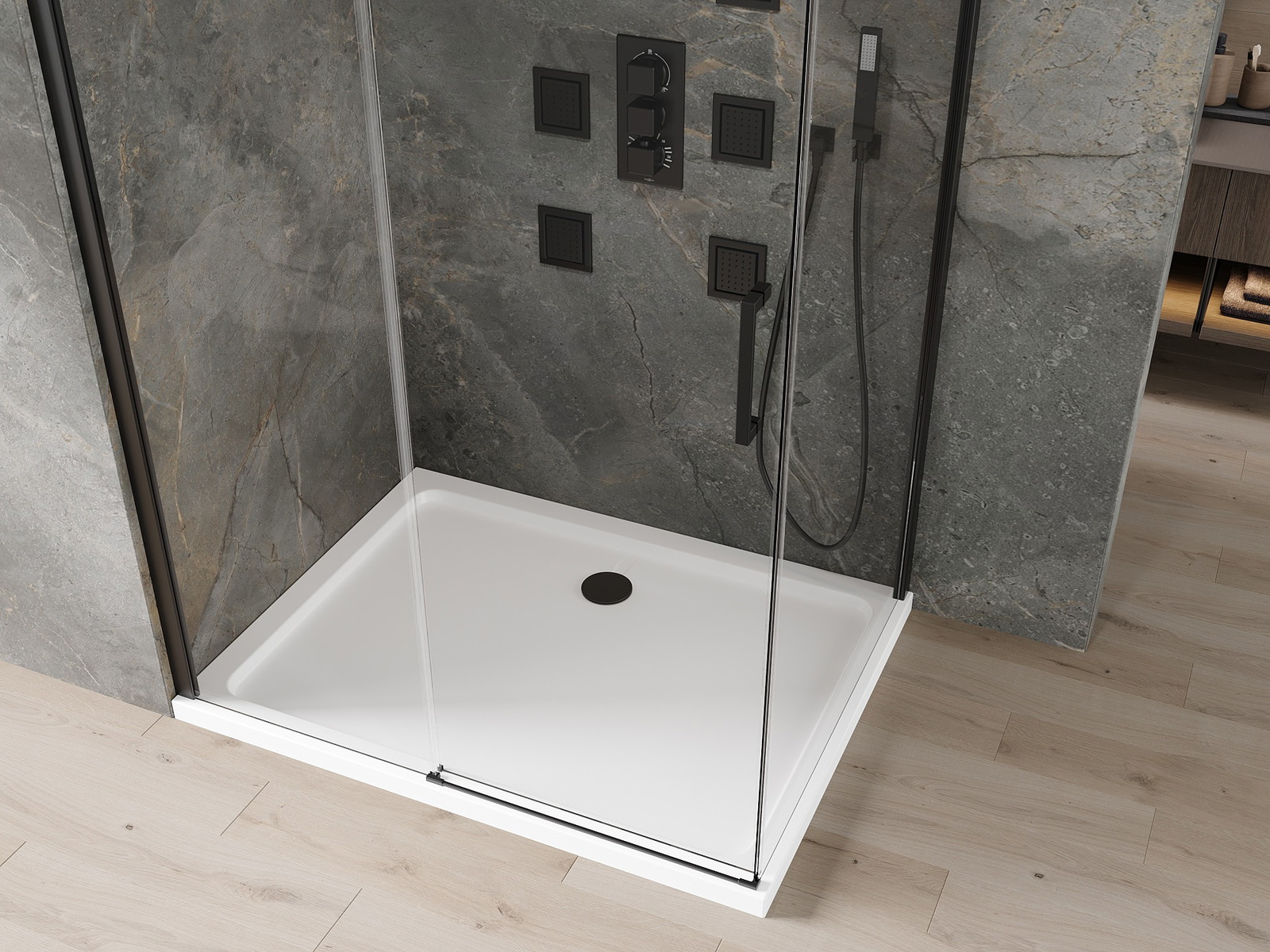 Mexen Omega drsna tuš kabina 110 x 100 cm, prozorna, črna + plitki tuš kad Flat, bela - 825-110-100-70-00-4010B