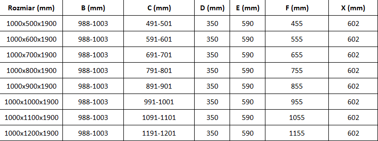 Velikost: 100x90 cm (vrata 100 cm, stena 90 cm)