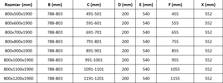Velikost: 80x80 cm (vrata 80 cm, stena 80 cm)