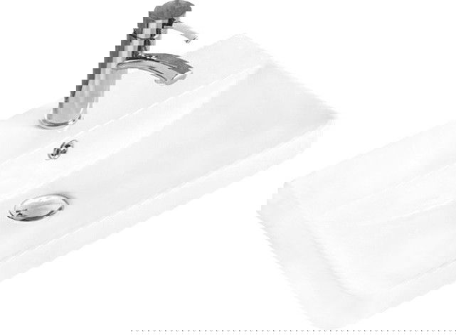 Umivalnik ima odprtino, v katero lahko namestimo baterijo. To omogoča prihranek dragocenega prostora v kopalnici in poudarja njeno estetiko. Ta rešitev prav tako omogoča lažje vzdrževanje čistoče okoli umivalnika.