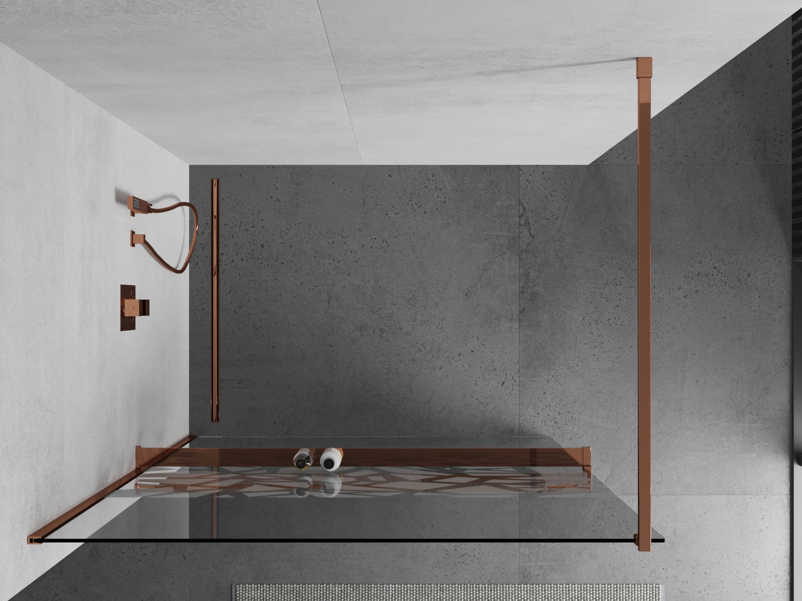 Mexen Kioto+ tuš stena s polico Walk-in 120 x 200 cm, bel vzorec, rožnato zlato - 800-120-121-60-85