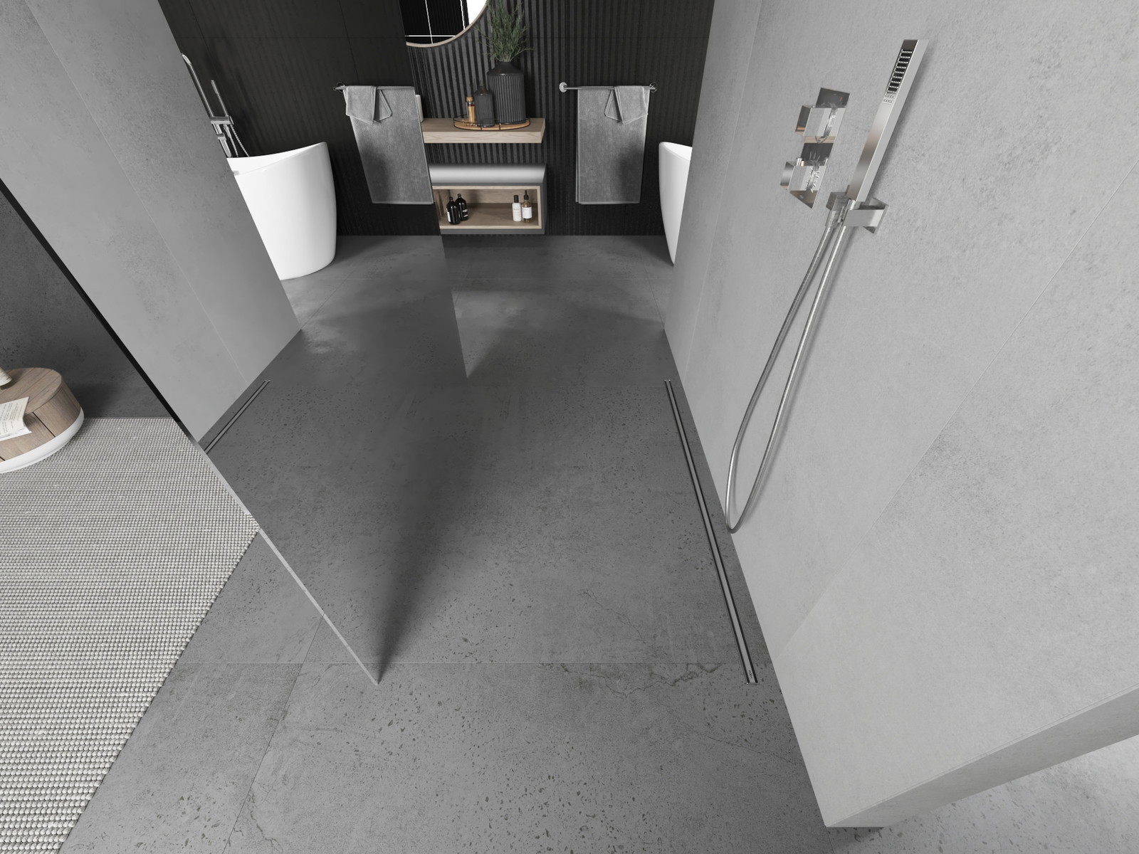 Izdelek je mogoče, glede na potrebe, namestiti tako na tuš-kabino kot tudi neposredno na tla. Univerzalni način montaže omogoča prilagoditev izdelka različnim vrstam kopalnic in konfiguracijam prostora.
