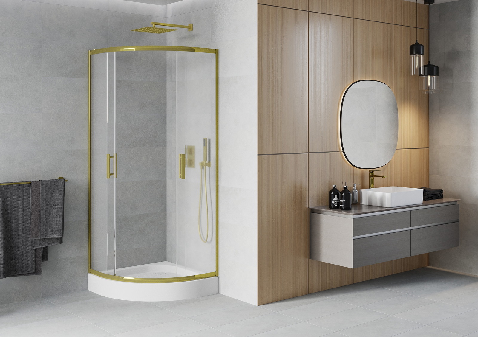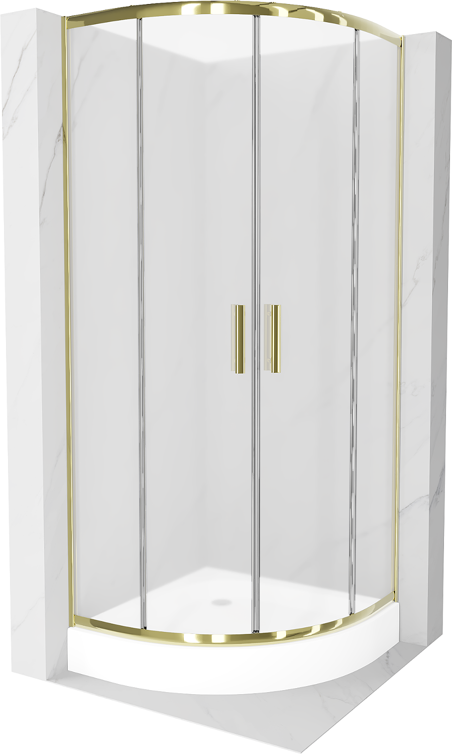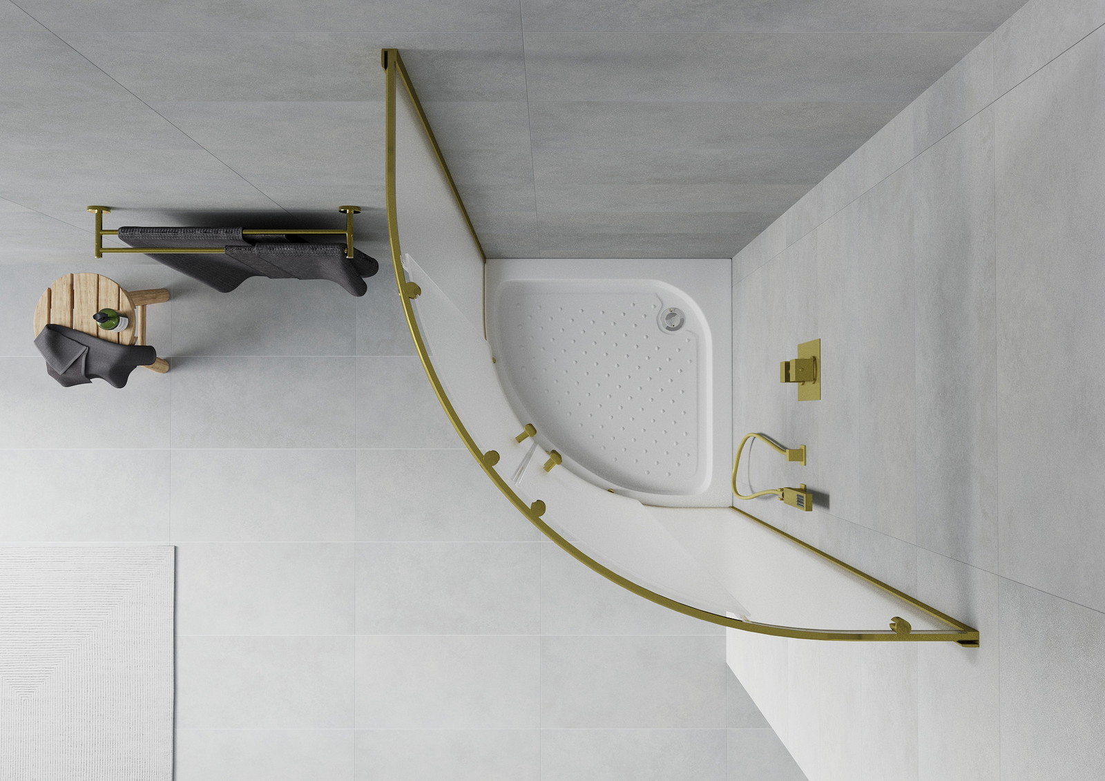 Mexen Rio polkrožna pršna kabina 90 x 90 cm, mraz, zlata + tuš kad, bela - 863-090-090-50-30-4710