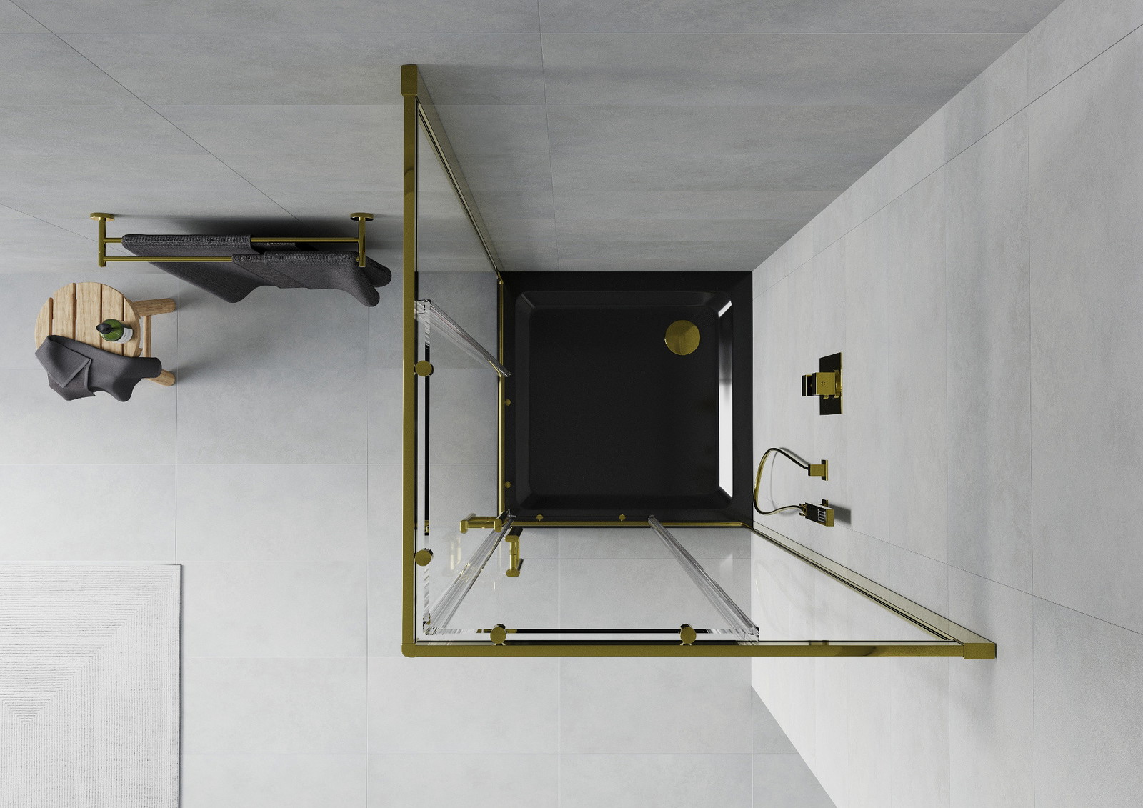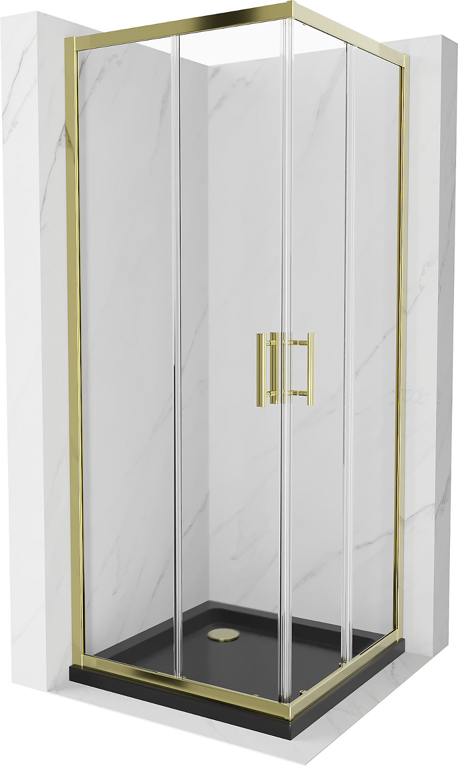 Mexen Rio kvadratna tuš kabina 80 x 80 cm, prozorna, zlata + tuš kad Flat, črna - 860-080-080-50-00-4070G
