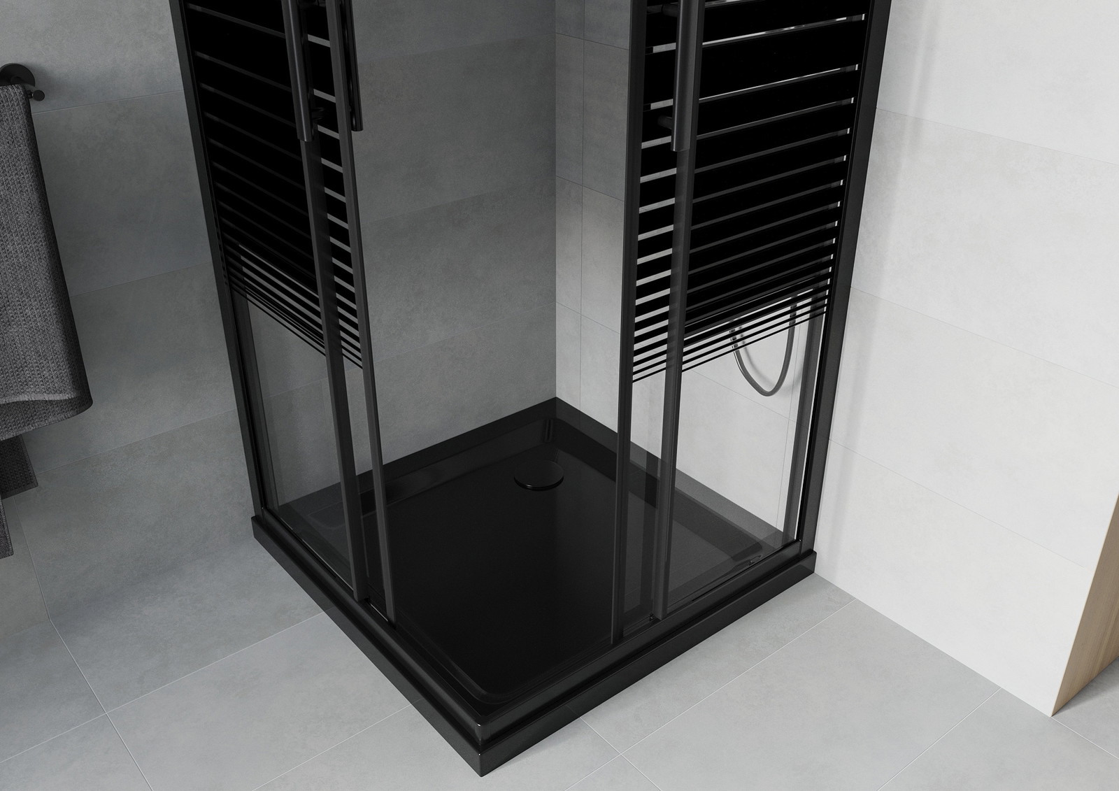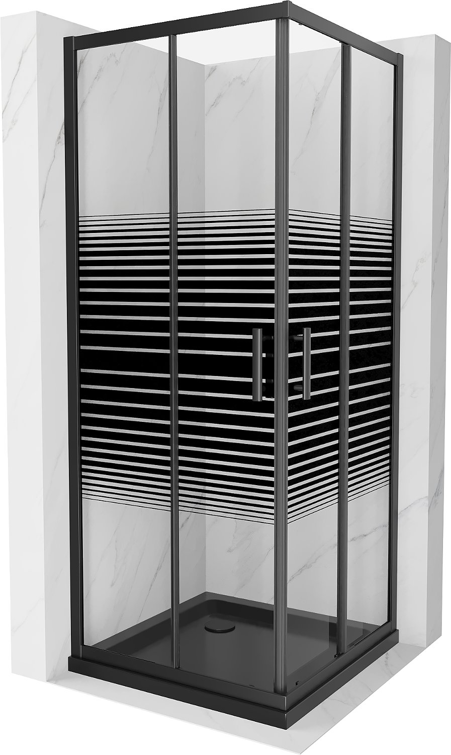 Mexen Rio kvadratna tuš kabina 80 x 80 cm, črne črte, črna + pladenj Flat, črna - 860-080-080-70-20-4070B