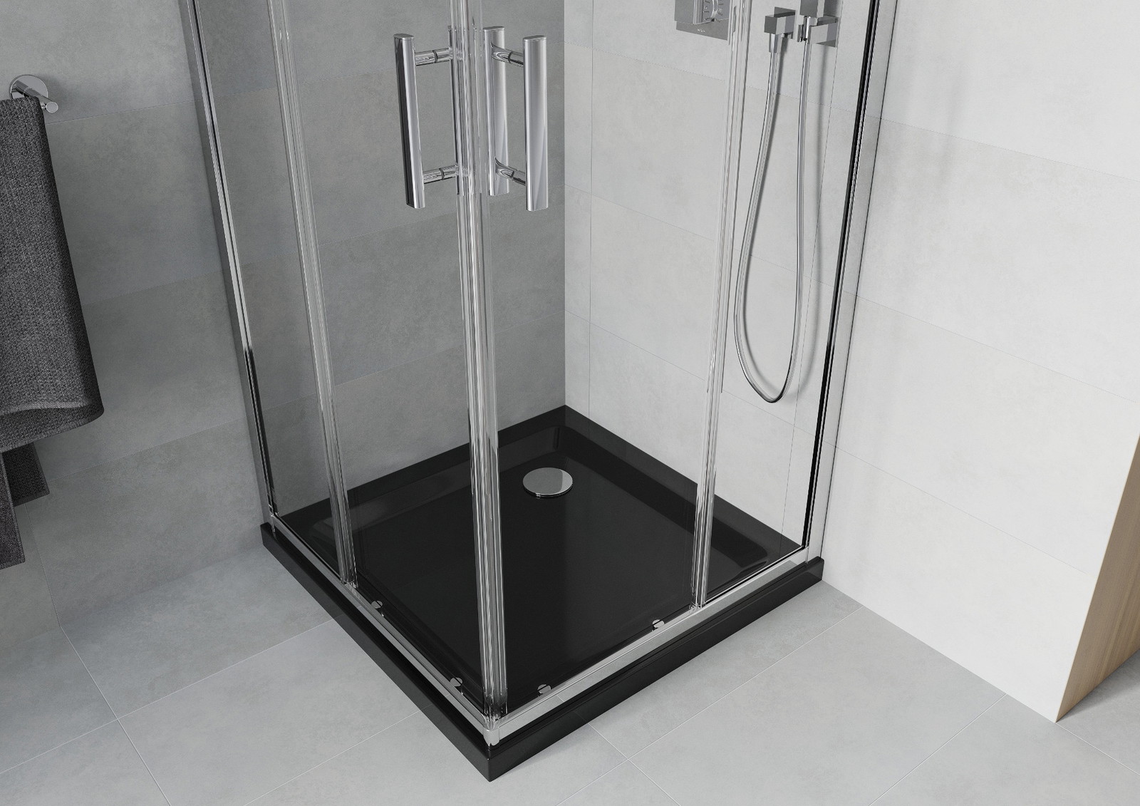 Mexen Rio kvadratna pršna kabina 70 x 70 cm, prosojna, krom + Flat tuš kad, črna - 860-070-070-01-00-4070