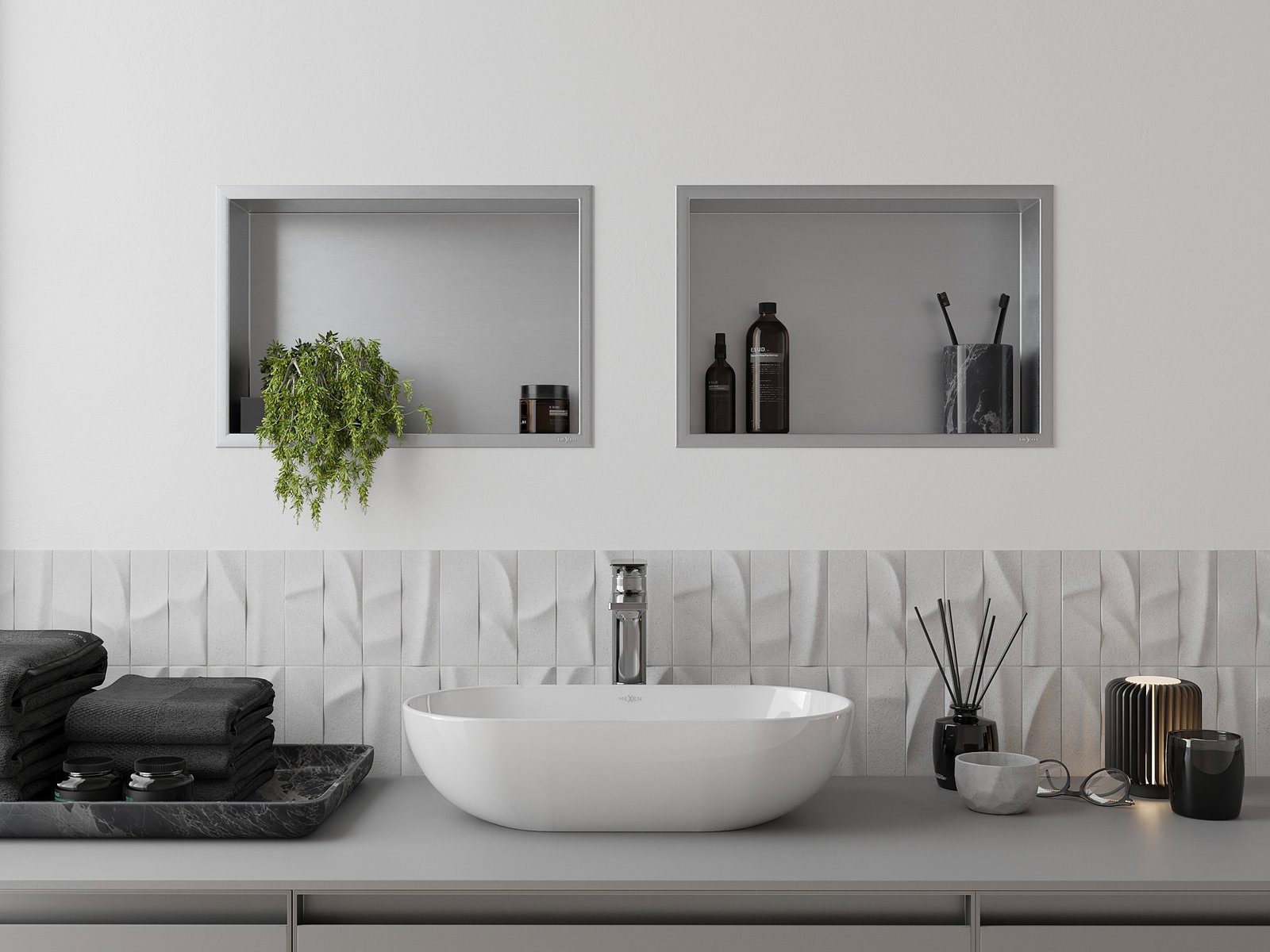 Možnost montaže v steni ali v posebej pripravljenem ohišju. Je to izjemno sodobna in funkcionalna rešitev, ki omogoča prihranek prostora ter prilagoditev izdelka estetiki notranjosti in ustvarjanje skladne kompozicije.