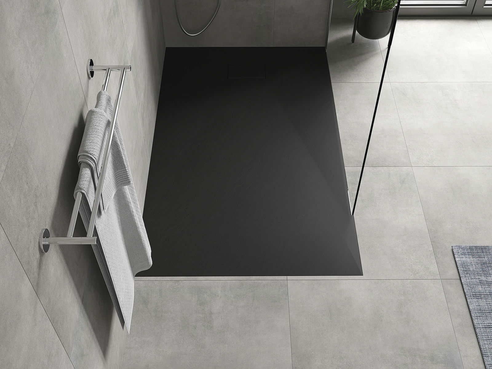 Površina pršne kabine v svoji strukturi spominja na kamen. Predstavlja edinstveno povezavo naravnega videza s sodobno notranjo opremo. Dodaja karakter, poudarja estetiko in eleganco zasnove kopalnice ter navdušuje s svojo obliko.