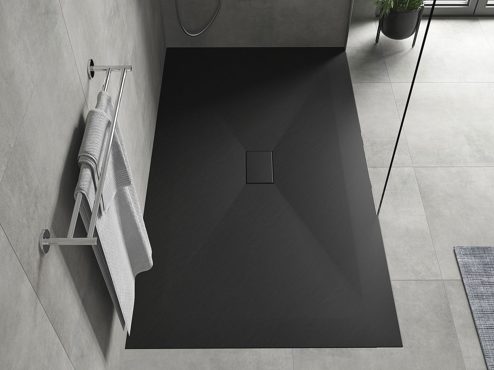 Površina pršne kabine v svoji strukturi spominja na kamen. Predstavlja edinstveno povezavo naravnega videza s sodobno notranjo opremo. Dodaja karakter, poudarja estetiko in eleganco zasnove kopalnice ter navdušuje s svojo obliko.
