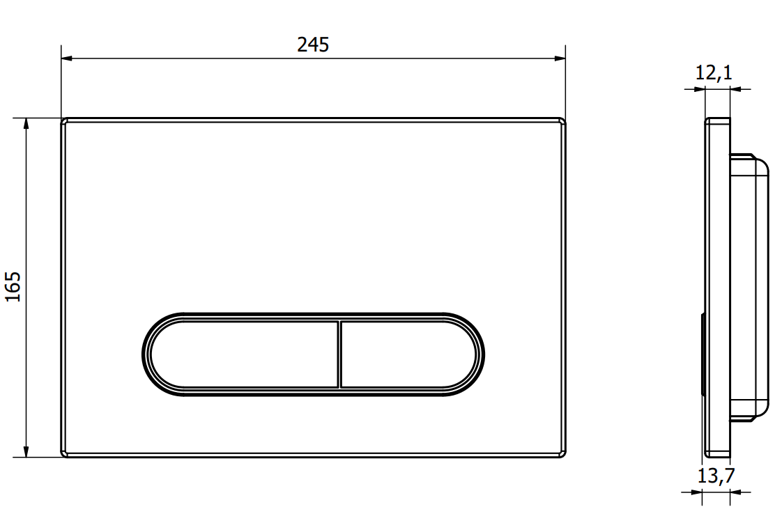Gumb je namenjen za nadometne okvirje, kjer je mesto montaže na sprednji strani konstrukcije. Takšna postavitev omogoča enostaven dostop in udobno upravljanje splakovanja.