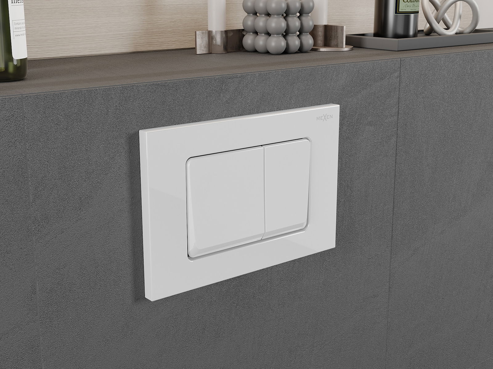 Gumb je namenjen za okvirje Mexen iz serije XS. Lahko je nameščen tako od spredaj kot od zgoraj na okvirju, kar povečuje njegovo univerzalnost. Takšna rešitev olajša namestitev v različnih montažnih pogojih. Zahvaljujoč temu je upravljanje splakovanja udobno in intuitivno.