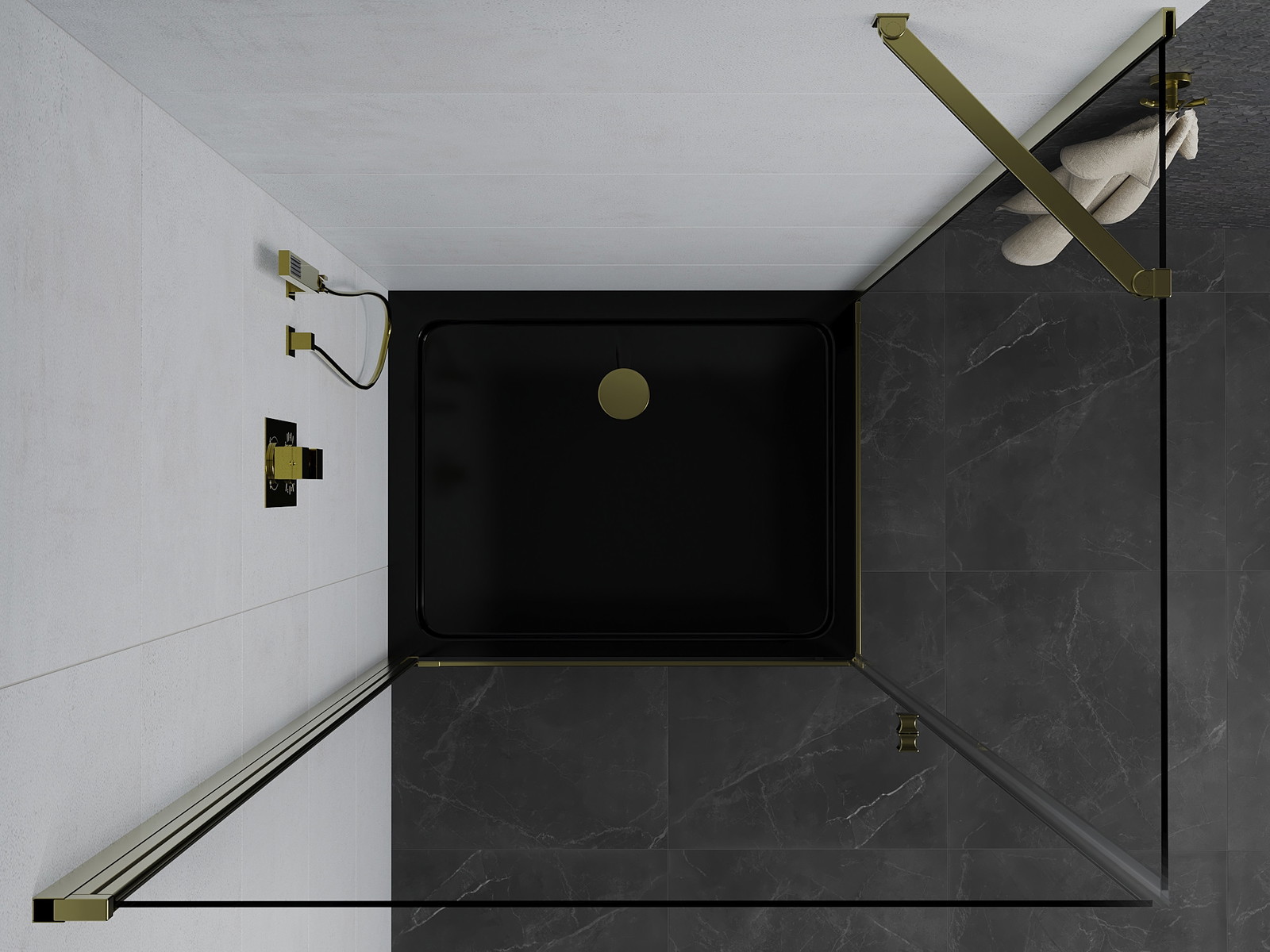 Priročen in udoben ročaj je izdelan iz trpežnega in odpornega kovine. Modna oblika v kombinaciji z zaključkom, ki ustreza barvi profilov, daje celoti sodoben in stilski videz, poudarjajoč estetiko vsake kopalnice.
