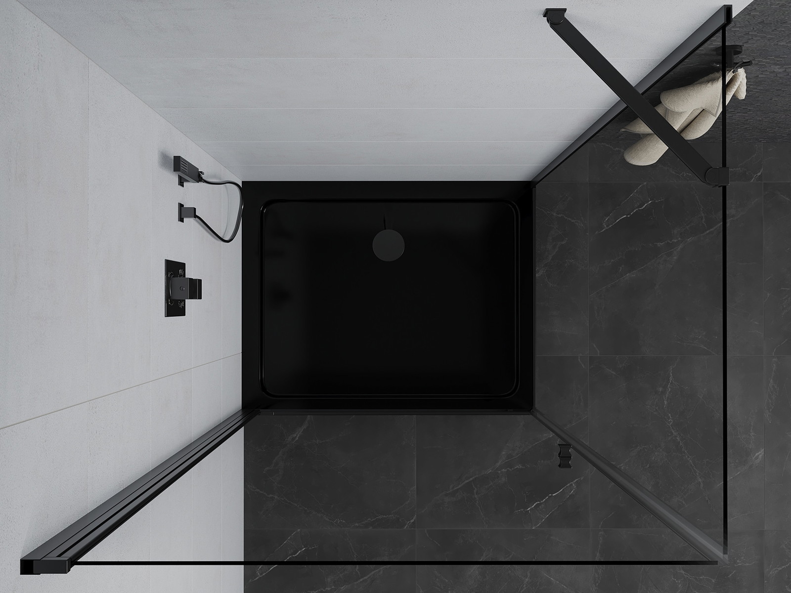 Mexen Pretoria je stilska tuš kabina z nagibnimi vrati, velikosti 100 x 110 cm, idealna za tiste, ki cenijo sodoben dizajn. Prozorno, kaljeno steklo debeline 6 mm s črnim zaključkom dodaja eleganco vsaki kopalnici. Kabina je univerzalno montažna in ponuja možnost namestitve na tuš kad ali ploščice. Ima prevleko za lažje čiščenje ter različne možnosti regulacije, skupaj s kovinskim ročajem in kompletom tesnil. Tuš kad Flat, izdelana iz črnega sanitarnega akrila, velikosti 110x100x5 cm, izstopa s slim dizajnom in dodatno ojačitvijo za večjo trajnost. Komplet vključuje sifon, ki se čisti od zgoraj, z odtokom premera 90 mm. Predstavljena tuš kabina je odlično povezovanje funkcionalnosti z eleganco.