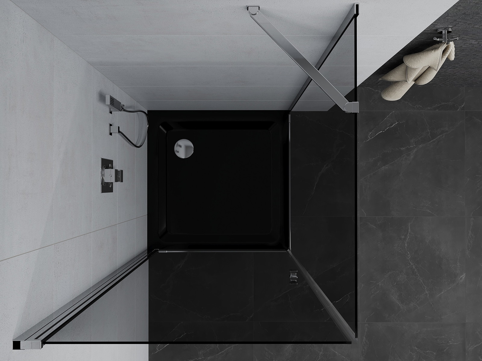Mexen Pretoria nihajna tuš kabina 80 x 80 cm, grafit, krom + tuš kad Flat, črna - 852-080-080-01-40-4070