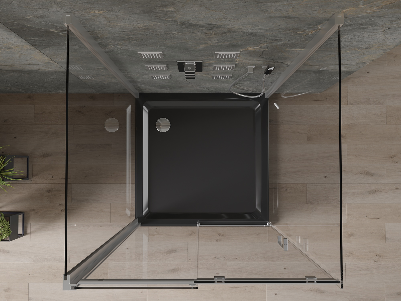 Mexen Rio kvadratna tuš kabina 90 x 90 cm, prozorna, črna - 860-090-090-70-00