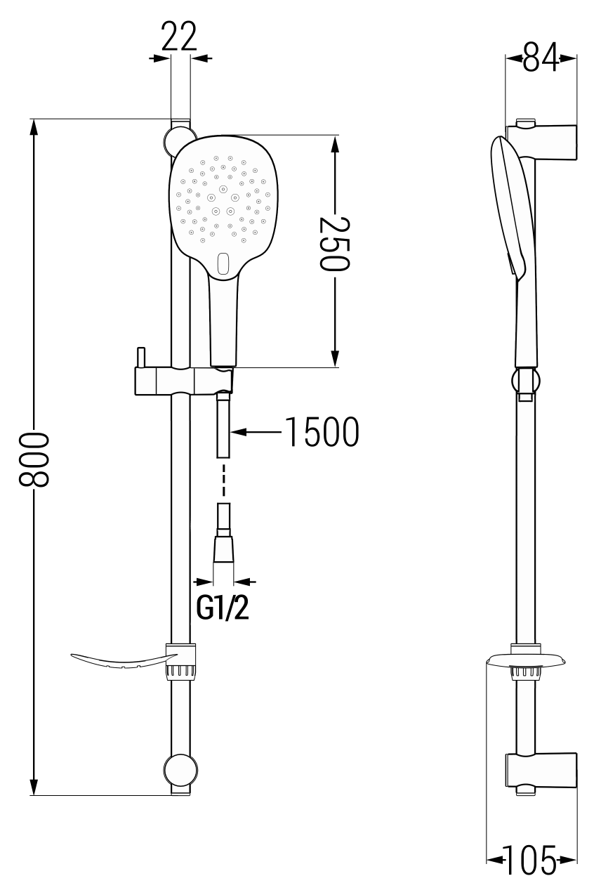 Standarden tok vode, ki posnema naravni dež. Kapljice enakomerno tečejo po telesu, ovijajoč ga s prijetnim občutkom vlaženja in omogočajo, da se potopite v sproščujočo in pomirjujočo izkušnjo, ki bo božala vaše čute med vsakodnevnim tuširanjem.
