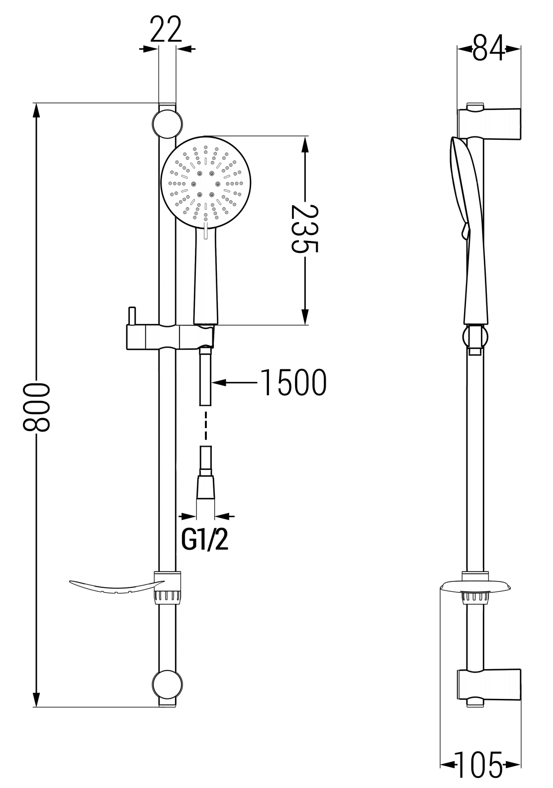 Razdalja od stene: 105 mm