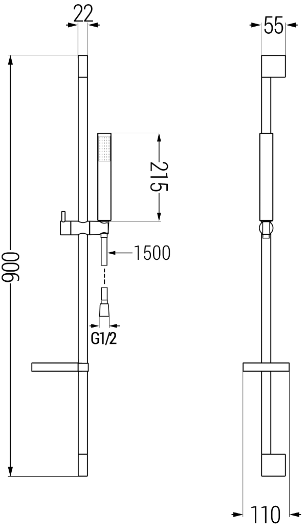 Priključek z navojem 1/2" je splošno uporabljan standardni element v notranjih vodovodnih instalacijah. Zahvaljujoč temu je priključitev in montaža naslednjih delov tuša veliko lažja in bolj intuitivna.