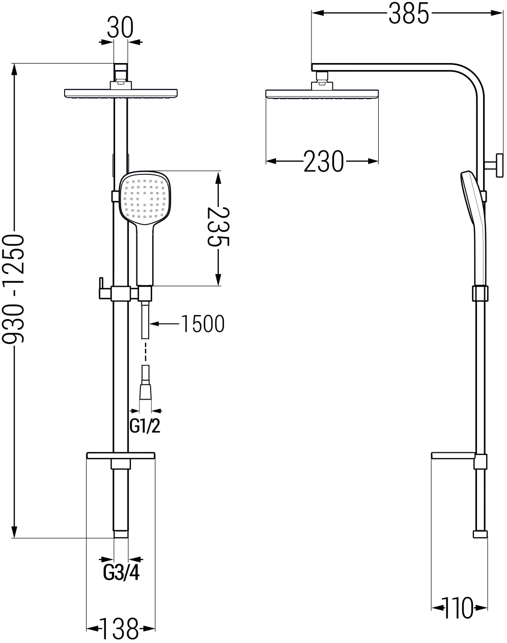 Velikost deževne glave: 230x230 mm