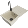 Mexen Cesar granitno pomivalno korito z eno komoro, odcejalnikom in kuhinjsko pipo Telma, črno s pikami - 6514-76-670200-70
