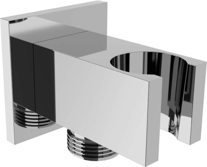 Kotna povezava je opremljena z držalom za ročaj prhe. Gre za praktično in priročno rešitev, ki omogoča prihranek prostora ter olajša vsakodnevno uporabo z hitrim dostopom do ročaja prhe.