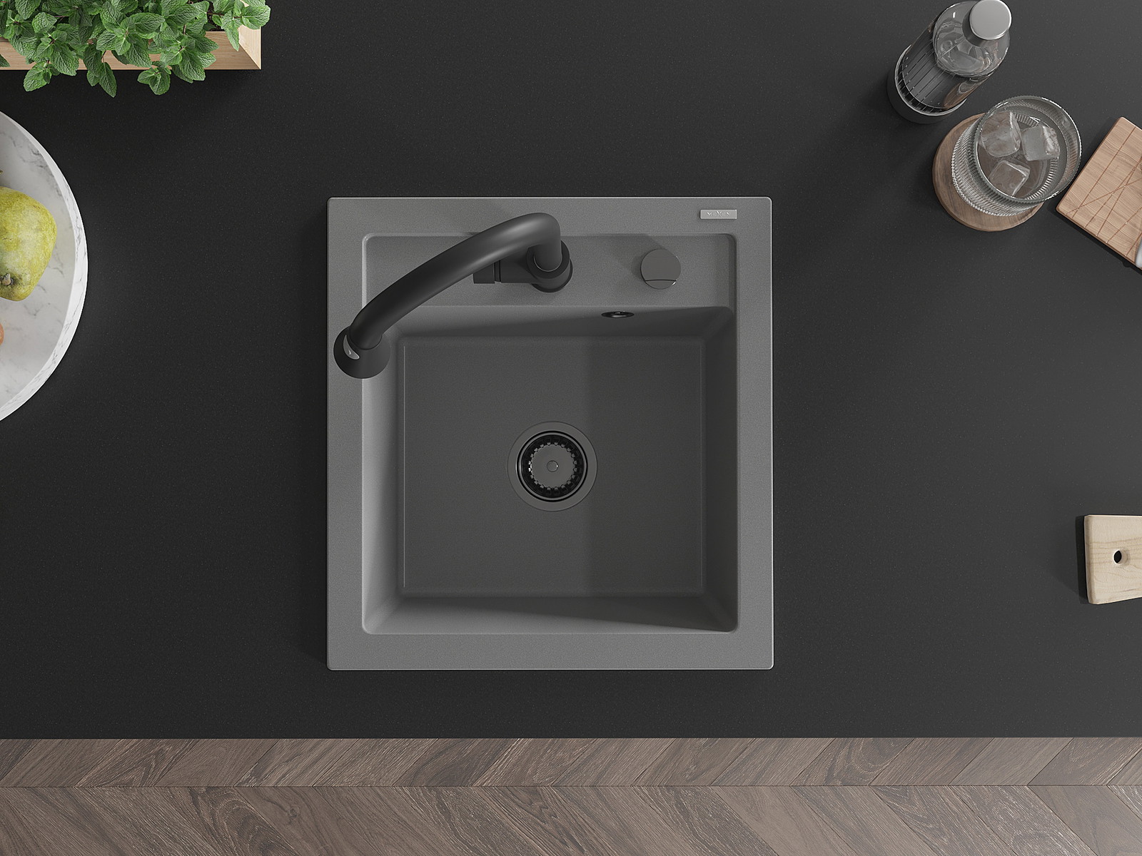 Mexen Vito granitno pomivalno korito z 1 komoro in kuhinjsko armaturo Elia, sivo - 6503-71-670101-70-B