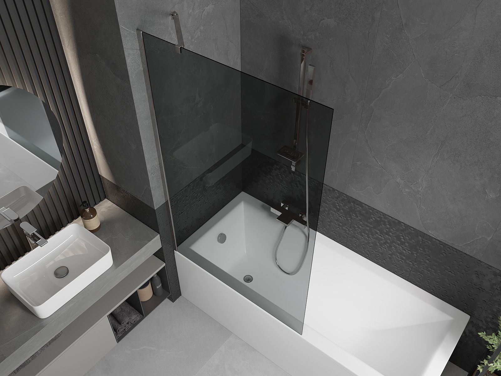 Učinkovita zaščita pred razlivanjem vode med kopanjem. Paravan ima tesnila, ki se popolnoma prilegajo stekleni plošči in robu kadi. Funkcionalna rešitev, ki zagotavlja varnost in enostavno vzdrževanje čistoče.