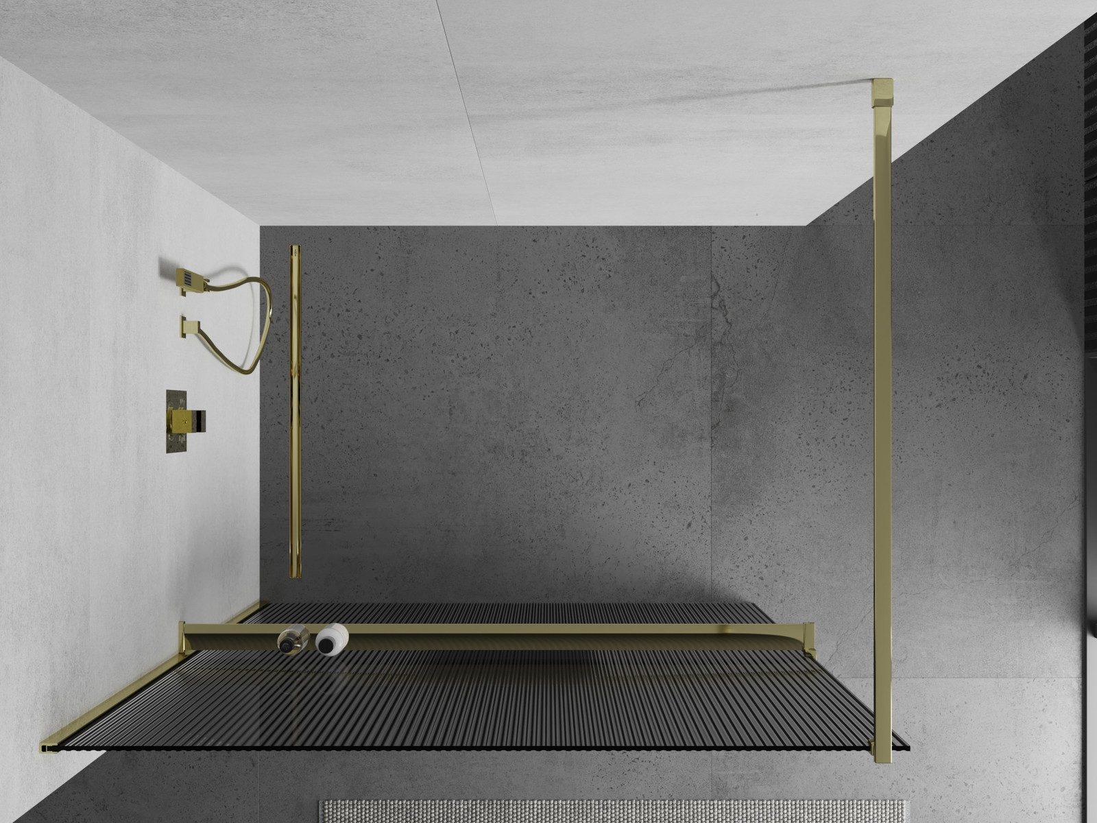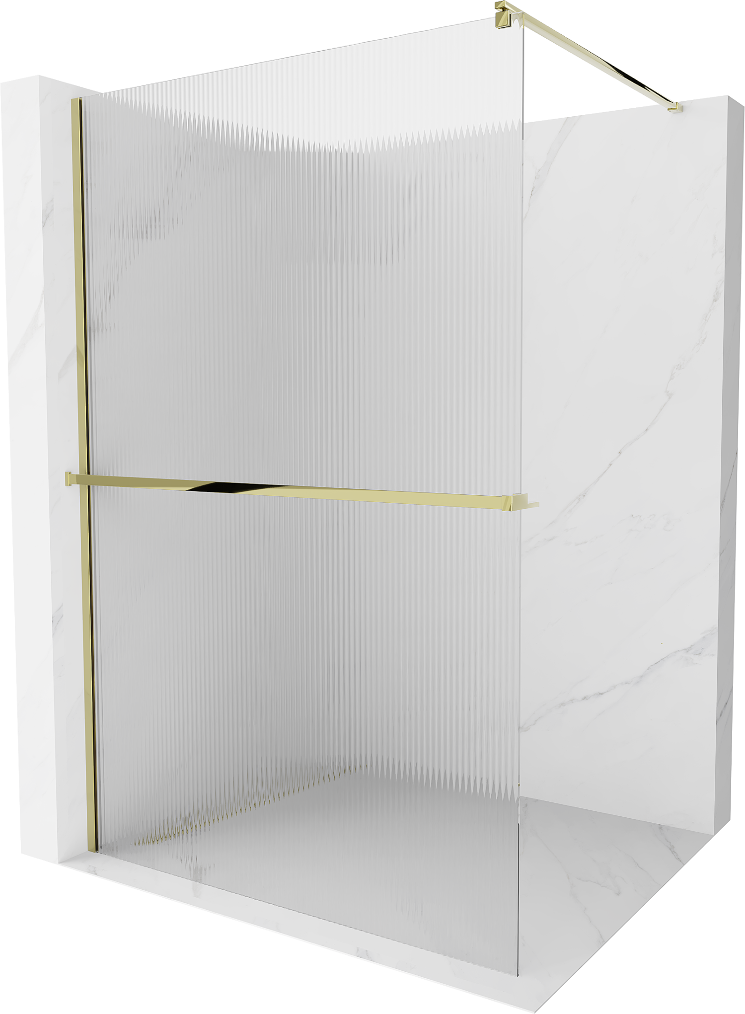 Mexen Kioto+ tuš stena z polico Walk-in 70 x 200 cm, črte, zlata - 800-070-121-50-09