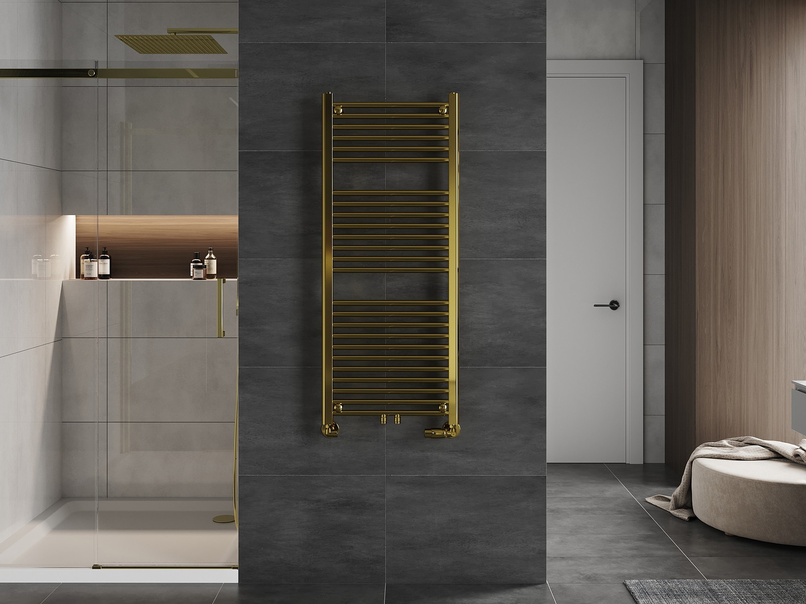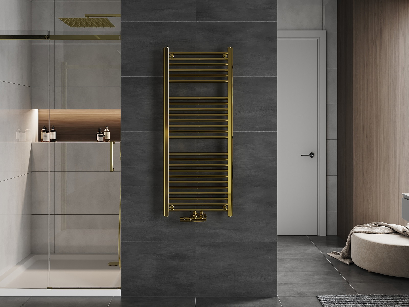 Mexen Mars je zlat kopalniški radiator, ki se ne odlikuje le po elegantnem videzu, temveč tudi po visoki funkcionalnosti. Z dimenzijami 1200 x 500 mm in globino 40 mm se popolnoma prilega vsaki kopalnici. Zaradi jeklene konstrukcije in trajne lakirane površine, odporne proti koroziji, izdelek zagotavlja dolgo življenjsko dobo in vzdržljivost. Toplotna moč 417 W omogoča učinkovito ogrevanje, največja delovna temperatura pa doseže 95°C. Mexen Mars ponuja prilagodljive možnosti montaže in možnost namestitve grelnika, kar dodatno povečuje njegovo univerzalnost. Komplet vsebuje potrebne dodatke, kot so obesi, montažni komplet, zapiralni čepi in zračni ventil. Trdna izdelava in visoka kakovost naredita ta radiator zanesljivo izbiro za vsako kopalnico.