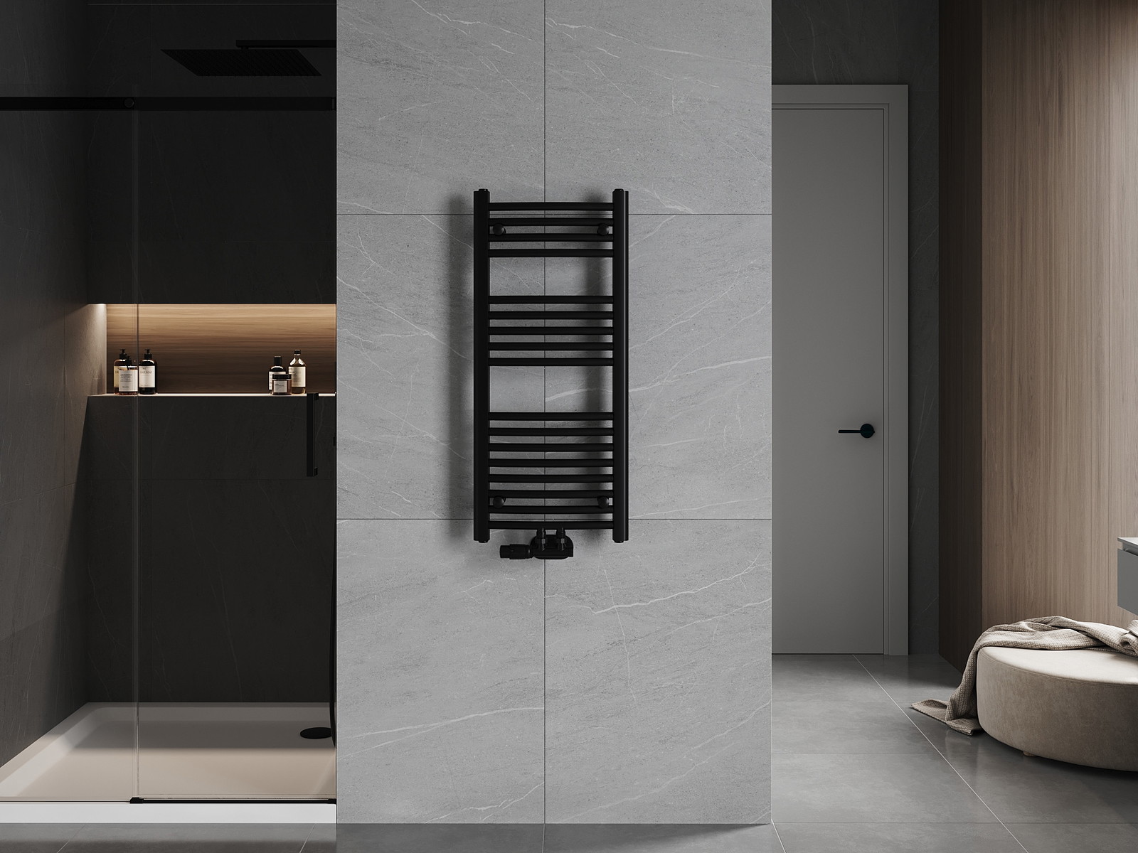 Mexen Ares je stilski kopalniški radiator, ki ne le zagotavlja optimalno toploto, ampak tudi lepo izgleda v vsaki kopalnici. Zaradi dimenzij 900 x 400 mm in grelne moči 312 W je idealen za manjše prostore. Črna barva RAL 9005 dodaja eleganco, trdna jeklena konstrukcija in trajna barvna prevleka pa zagotavljata odpornost proti koroziji. Univerzalni priključki in možnost montaže grelca povečujejo funkcionalnost tega modela, zagotavljajo udobje uporabe in enostavnost namestitve.
