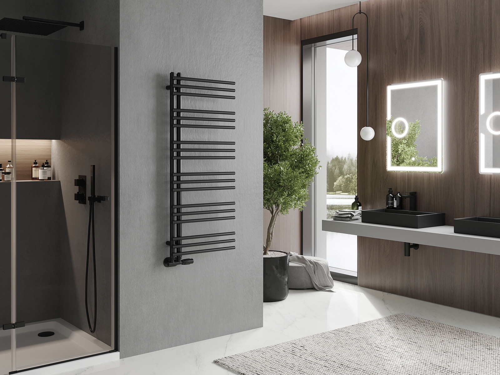 Mexen Neptun je eleganten kopalniški radiator z modernim dizajnom, idealen za vsak prostor. Njegove mere so 1200 x 500 mm, globina pa dosega 66 mm, kar omogoča varčevanje s prostorom. Visoka ogrevalna moč 456 W in maksimalna delovna temperatura do 95 °C zagotavljata hitro ogrevanje prostora. Trdna jeklena konstrukcija v črni barvi RAL 9005 in odpornost na korozijo zagotavljata dolgotrajnost. Možnost namestitve dodatnega grelca dodatno povečuje funkcionalnost naprave. Radiator je opremljen z montažnimi dodatki in odzračevalnikom.