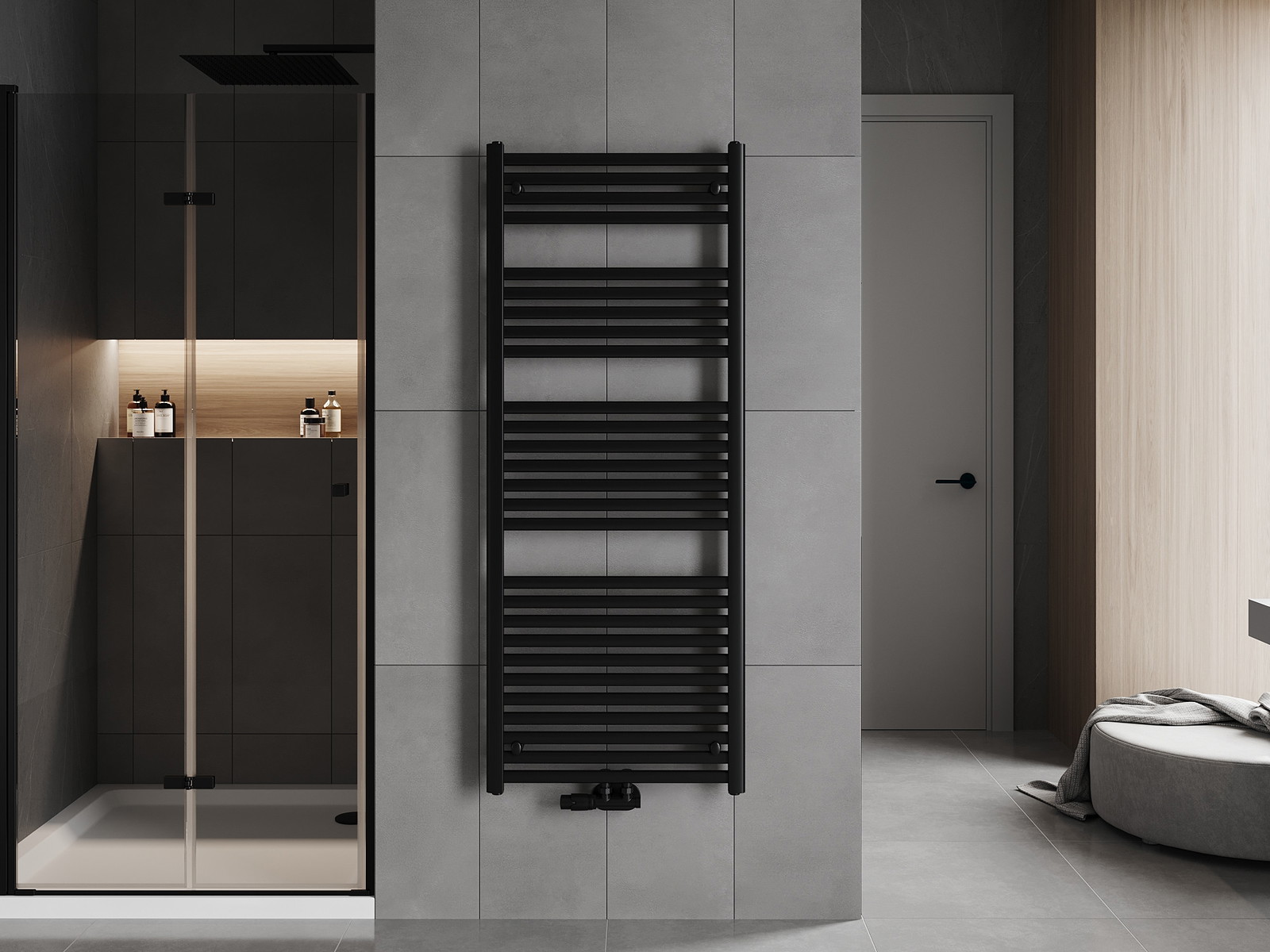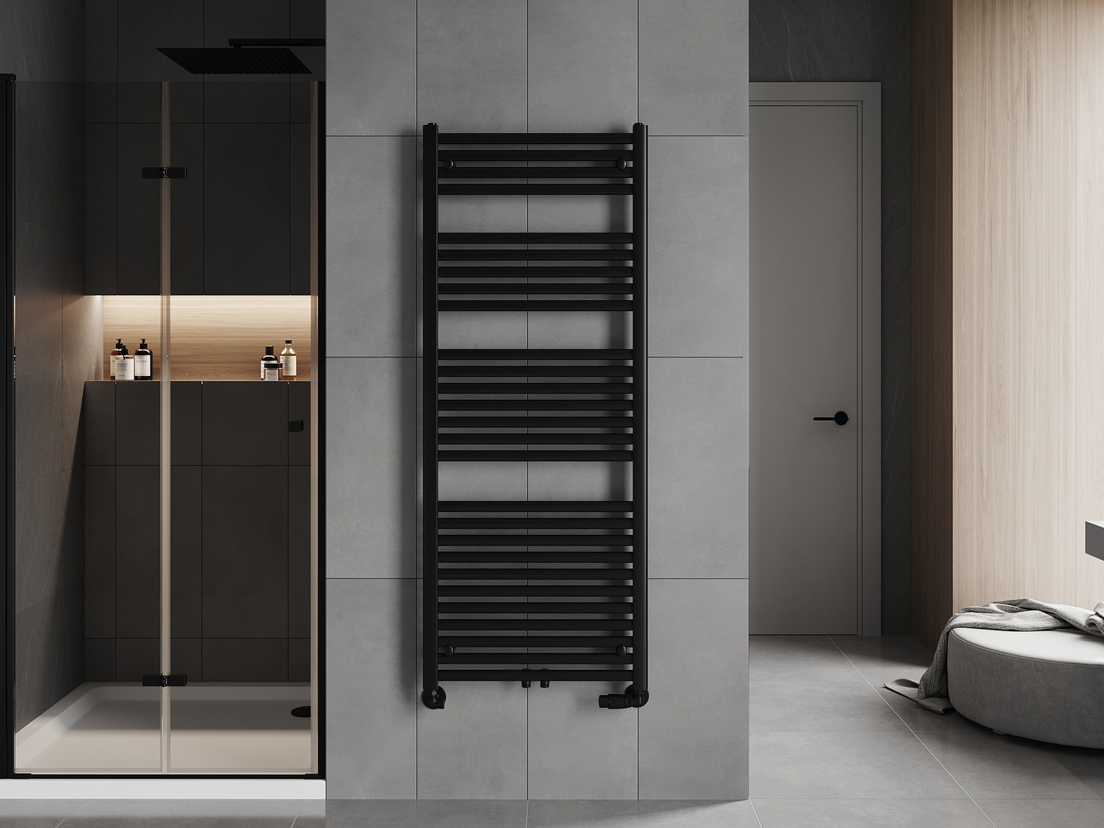 Mexen Hades je odlična izbira za vašo kopalnico, saj ponuja sodoben dizajn in izjemno funkcionalnost. Radiator z dimenzijami 1500 x 600 mm zagotavlja učinkovito ogrevalno moč 812 W pri maksimalni delovni temperaturi 95°C. Izdelan iz jekla, prekrit s trpežno, proti koroziji odporno barvno zaščito v črni barvi RAL 9005. Ponuja različne možnosti priključkov in možnost montaže grelnika. Popoln montažni komplet in dodatki olajšajo montažo. Idealen za sodobne notranjosti.