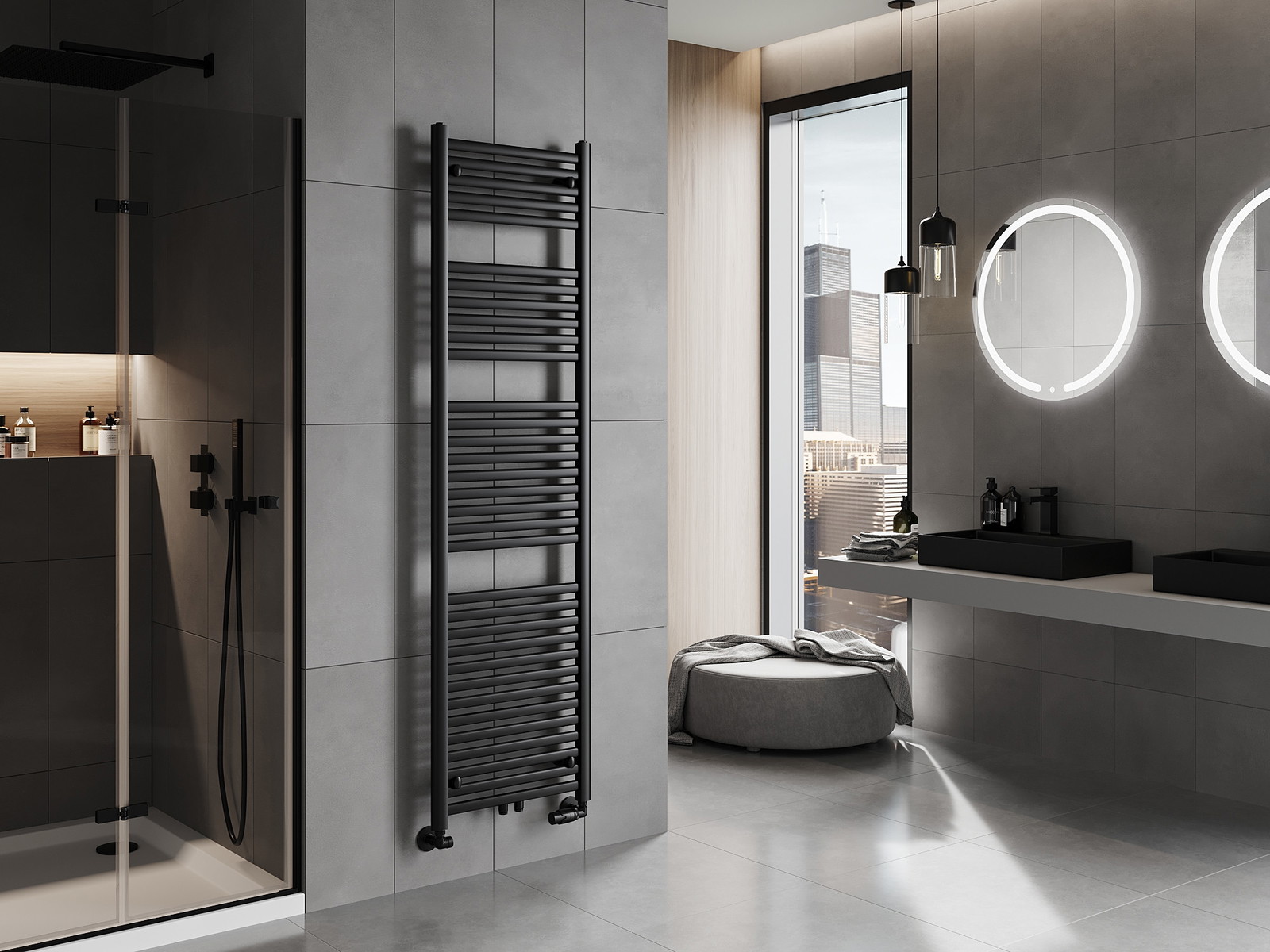Mexen Hades je sodoben kopalniški radiator mere 1800 x 500 mm, ki se ponaša s toplotno močjo 854 W in elegantno črno površinsko obdelavo RAL 9005. Izdelan je iz jekla in ima visoko odpornost na korozijo zahvaljujoč trpežni lakirani prevleki. Namestitev je prilagodljiva zahvaljujoč različnim priključnim možnostim: spodnjemu (45 cm) in srednjemu (5 cm). Maksimalna delovna temperatura je 95 °C, delovni tlak pa 0,6 Mpa. Poleg tega radiator omogoča možnost namestitve električnega grelca. V kompletu so nosilci, montažni komplet, pokrovni čepi in izpustni ventil, kar ga naredi popolno rešitev za vašo kopalnico.