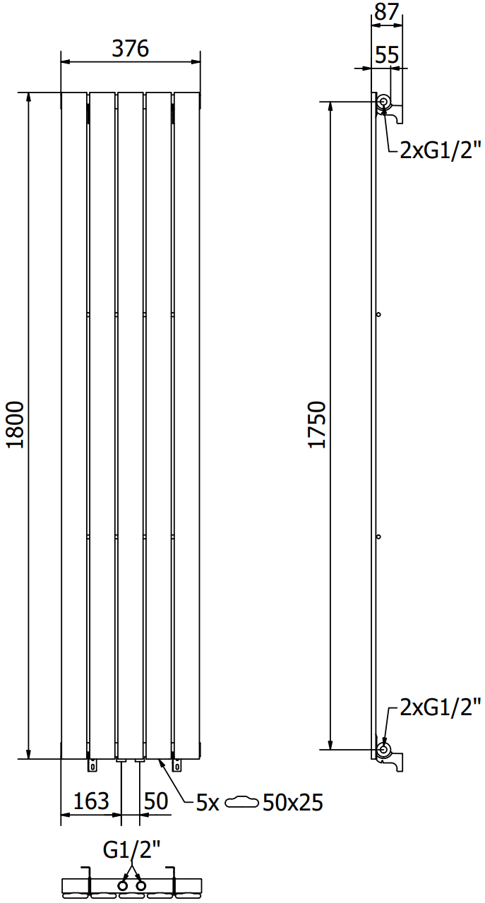 - 4xG ½″ z vrha ter spodaj z desne ali leve strani