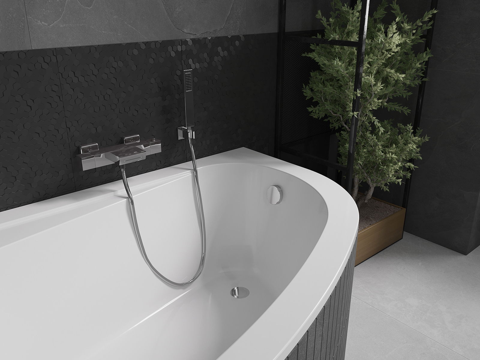 V kompletu je samodejni kopalniški sifon. Ima gumb, s katerim lahko odpremo ali zapremo iztočni ventil, ne da bi pri tem zmočili roke. Higienska in varna rešitev, ki omogoča popoln nadzor.