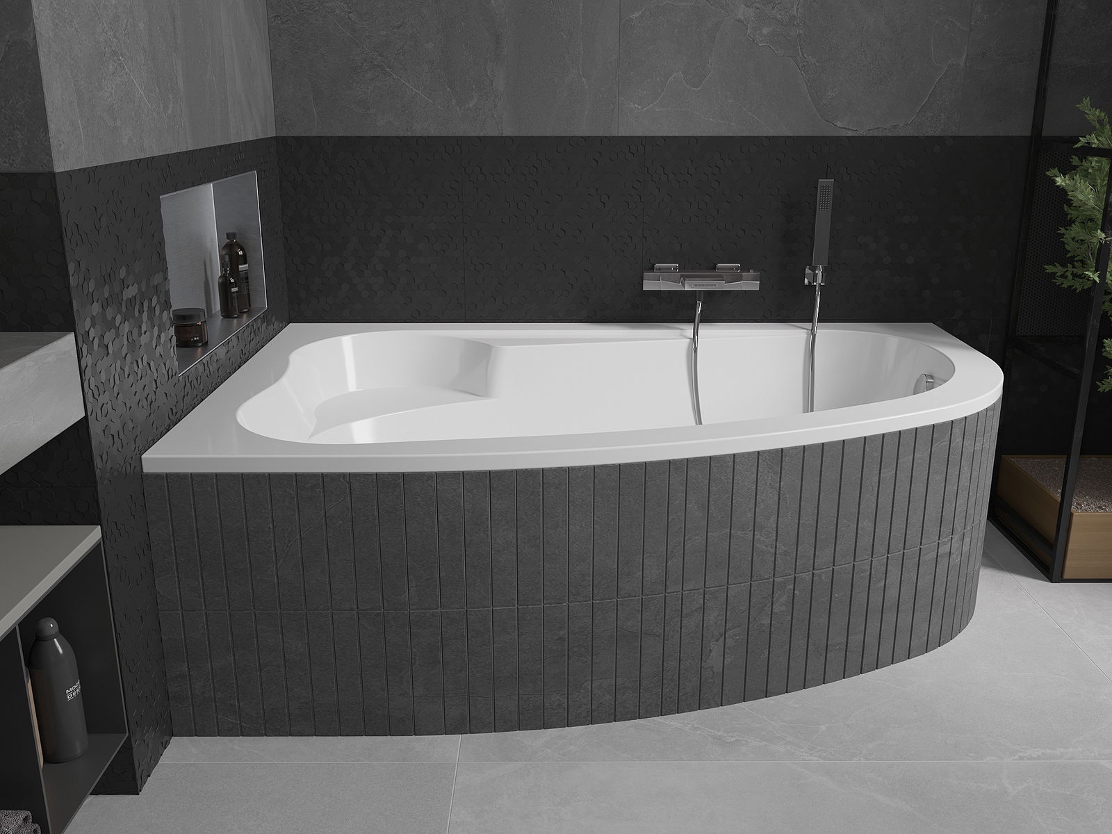 Kopalna kad je opremljena z nastavljivimi nogicami, ki omogočajo njeno izravnavo tudi na neravni površini. Praktična rešitev, ki zagotavlja večjo stabilnost in varnost med uporabo ter enostavnost montaže.