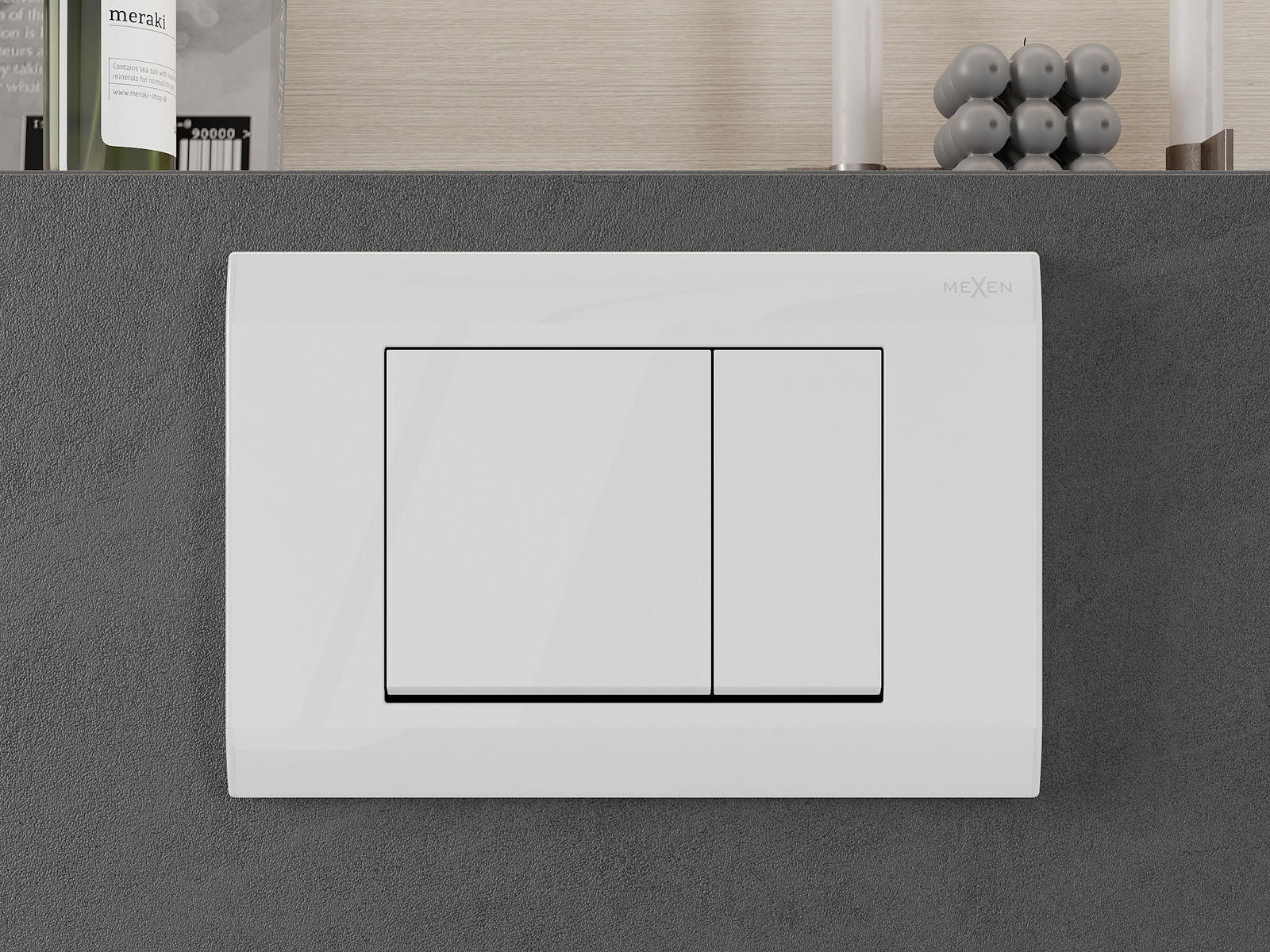 Gumb je namenjen za nadometne okvirje, kjer je mesto montaže na sprednji strani konstrukcije. Takšna postavitev omogoča enostaven dostop in udobno upravljanje splakovanja.