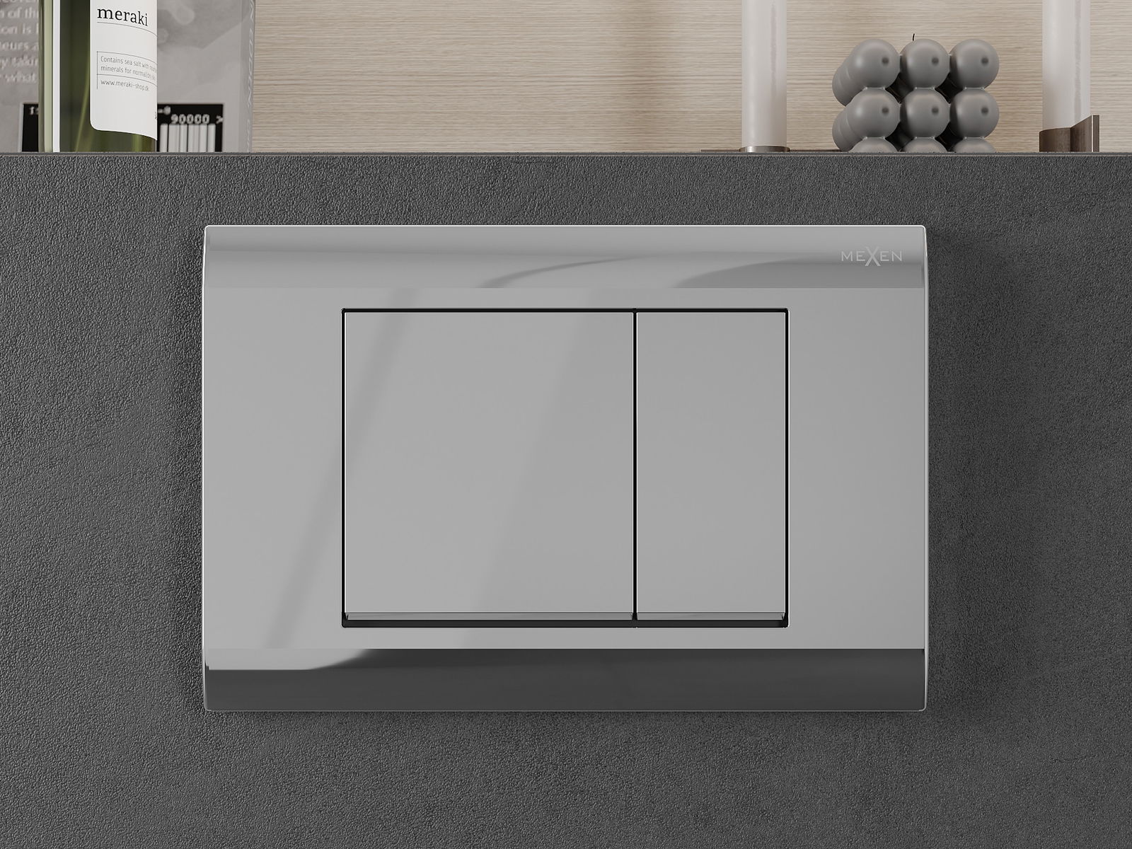 Gumb je namenjen za nadometne okvirje, kjer je mesto montaže na sprednji strani konstrukcije. Takšna postavitev omogoča enostaven dostop in udobno upravljanje splakovanja.