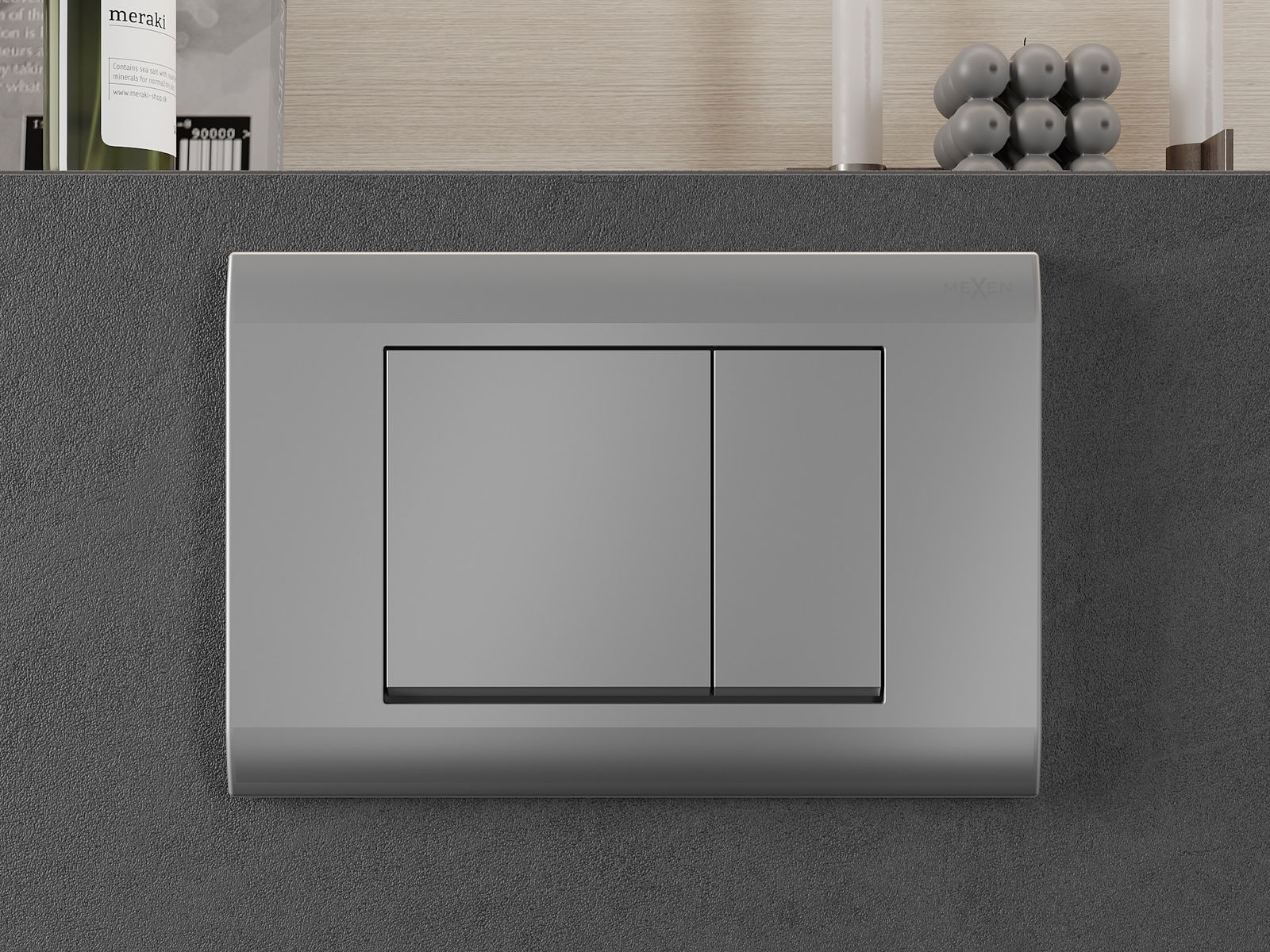Gumb je namenjen za nadometne okvirje, kjer je mesto montaže na sprednji strani konstrukcije. Takšna postavitev omogoča enostaven dostop in udobno upravljanje splakovanja.