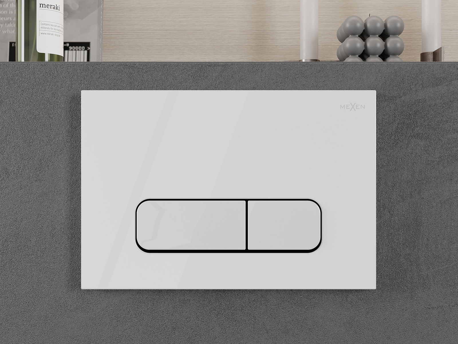 Gumb je namenjen za nadometne okvirje, kjer je mesto montaže na sprednji strani konstrukcije. Takšna postavitev omogoča enostaven dostop in udobno upravljanje splakovanja.